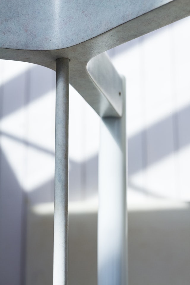 The earthen red powder coat material was introduced into the collection in 2017 as the first addition of colour. The deep red finish is achieved by applying pigment using the process of powder coating – a dry finishing process that uses electrostatically charged pigment particles that, once heated, are fused into a uniform coating.