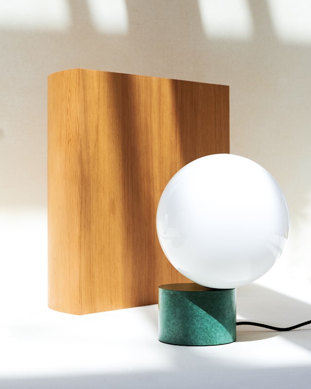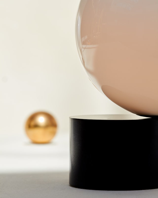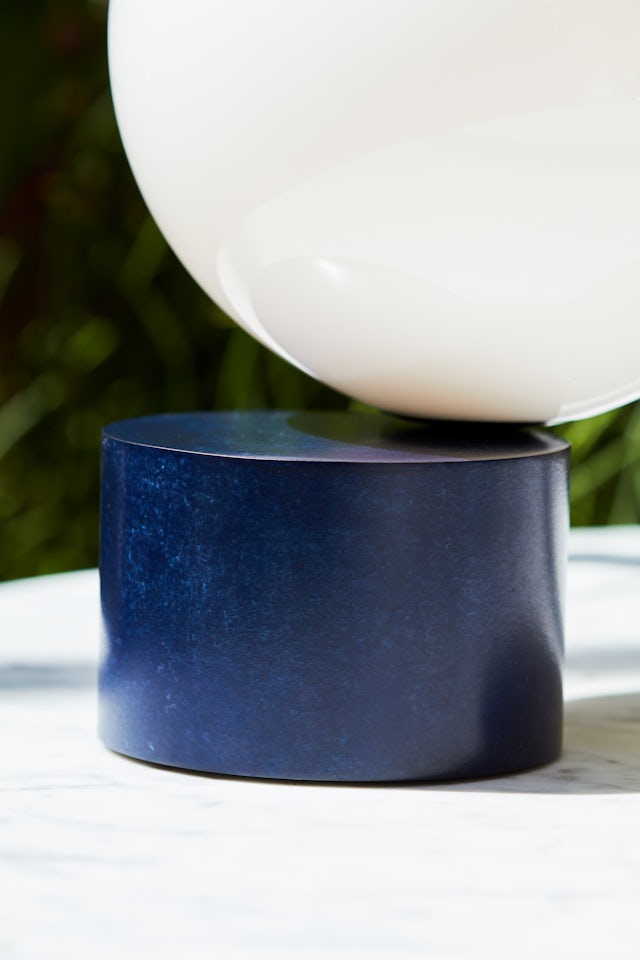 This brass-based material uses the industrial process of powder coating to achieve its rich, petrol blue colour. Powder coating is a dry finishing process that uses electrostatically charged pigment particles, which, once heated, are fused into a uniform coating. This colour was first introduced into the collection in 2019 for The Philosophical Egg.