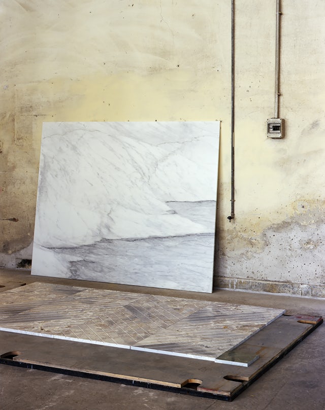 During August 2013, I was art directing a photo shoot at a marble company in Versilia. In one of those day-dreaming moments in which you are waiting for the photographer to finish a previous shot, I spotted this slab of Arabescato Altissimo resting temporarily against the warehouse wall. A greyscale detail from a landscape of rocks as they meet the sea or perhaps a series of floating icebergs beautifully captured within a random block of marble. It was pure coincidence how it was saved from the sliced block before being cut into smaller tiles, its beauty gone for good. Once the shoot was over I asked to purchase the slab and organised for it to be shipped to my house in London. It now sits in my entrance corridor, a reminder of how important it is to surround ourselves with objects that help us read imaginary landscapes.