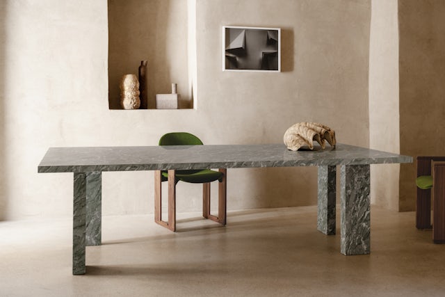 - Clockwise was created in Verde Mediterraneo marble - a material very dear to the designer that "is like a Japanese painting of the sea" and reminds him of his homeland, Cyprus, and the colour of the waters in which he loves to swim. It is also available in Verde Avocado marble with a matt finish and in natural stained ash wood, in square and rectangular formats.
