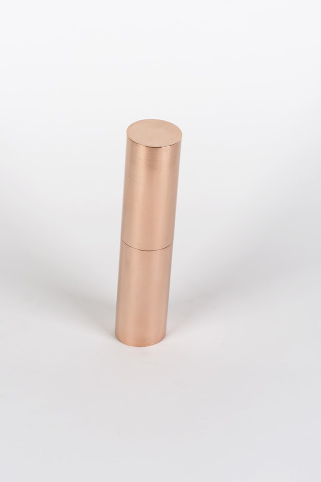 Italic is Anastassiades’ first collaboration with Carl Auböck, the historic Wiener Werkstätte workshop in Vienna. It is machined from a solid rod of brass or copper to house a quality ceramic mill, used to grind salt or pepper. The cylinder is cut at its base, allowing the object to sit at a slight angle, creating an interesting composition when used in a group.