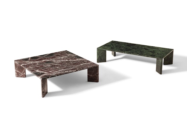 The Ordinal table in a low version, in two different shapes, designed for living rooms and lounge spaces. The clean, elegant lines that characterise the collection distinguish this table that retains the sophisticated and sculptural appearance. Compared to the high version, Ordinal Low has a structural underpanel that provides even more stable support in an almost invisible manner. Available in rectangular or square version, the table comes in five types of marble: Calacatta, Carrara, Portoro Silver, Rosso Levanto and Verde Alpi.