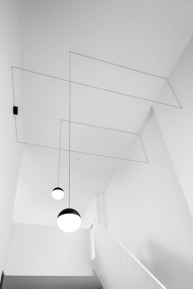 String Lights was the first collaboration with Flos in 2013. The project is a gesture of handing creativity to the user: a lamp with an extra-long fine cable that can be configured in endless ways by simply stretching it over selected points on the ceiling, wall or floor to create subtle interventions in a space.