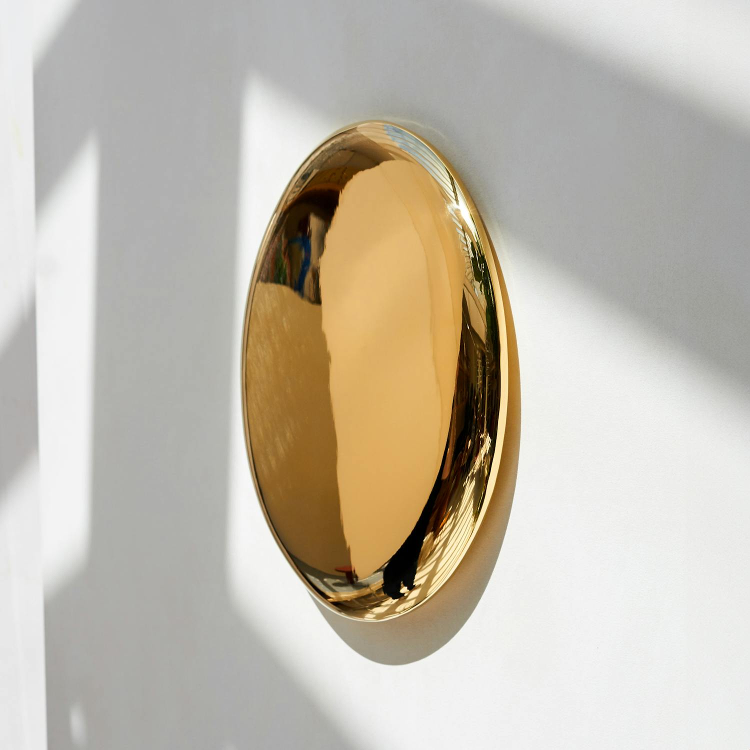 The Greek philosopher Socrates urged young people to look at themselves in mirrors so that, if they were beautiful, they would become worthy of their beauty. The Beauty Mirror takes inspiration from those ancient polished surfaces, offering a reflective image with a golden glow. This mirror challenges the notion of what a true reflection is, both in terms of consistency and colour.