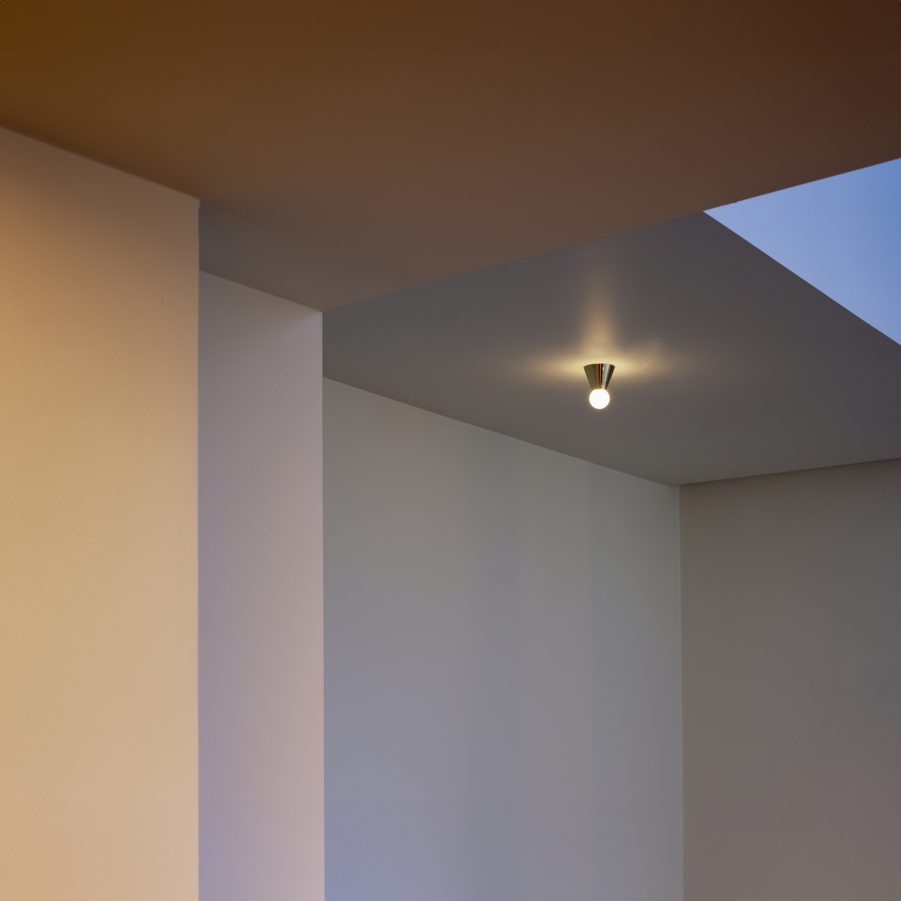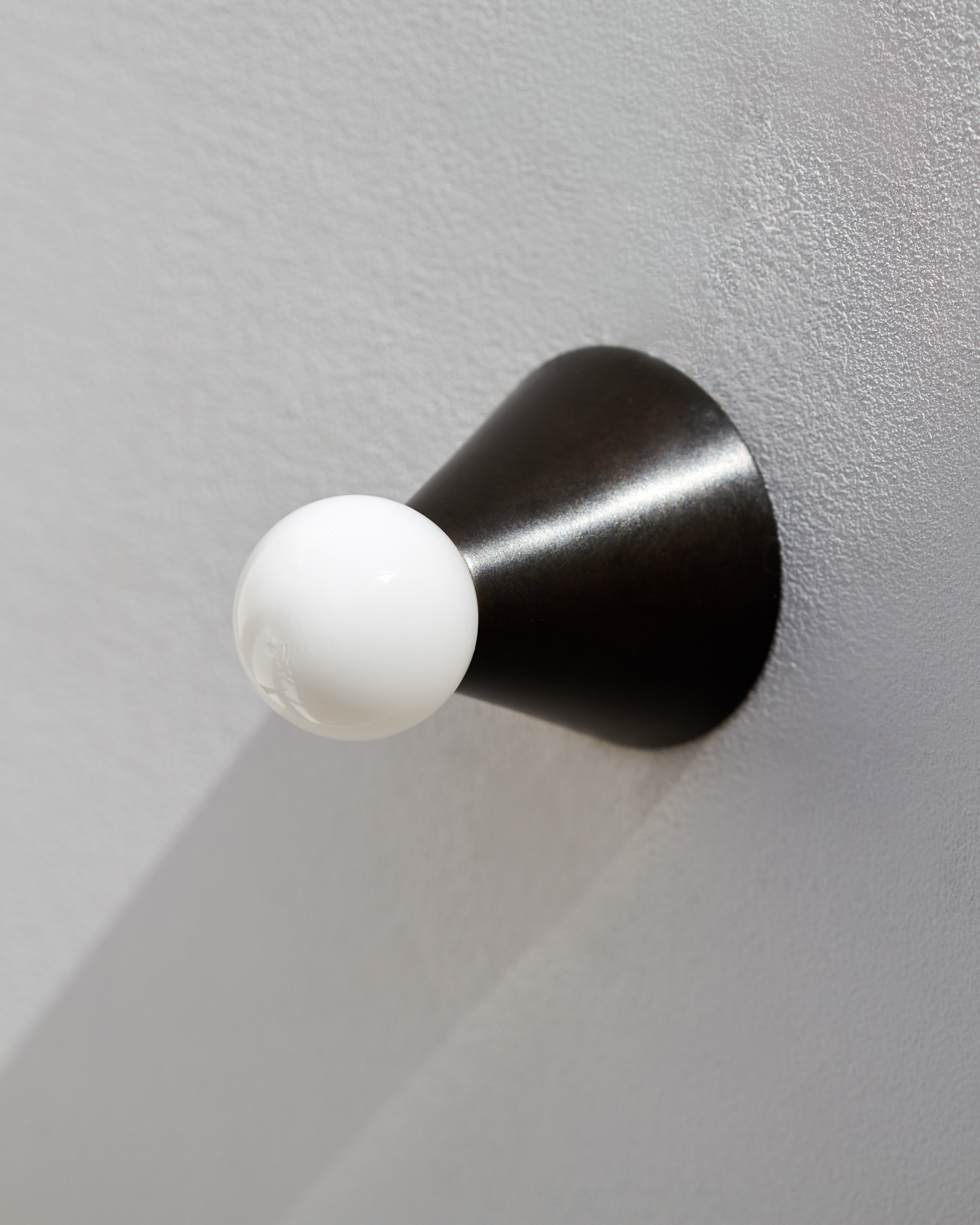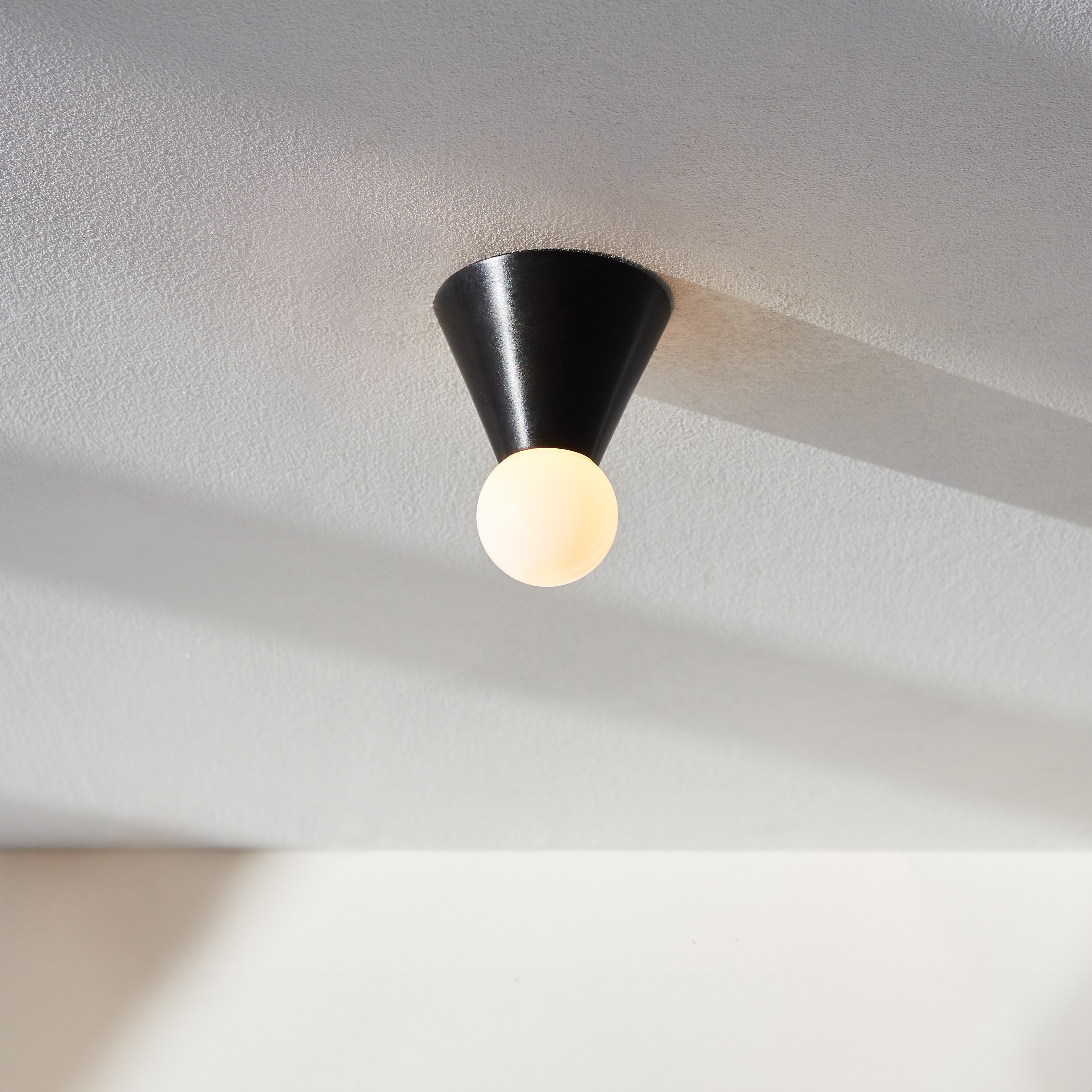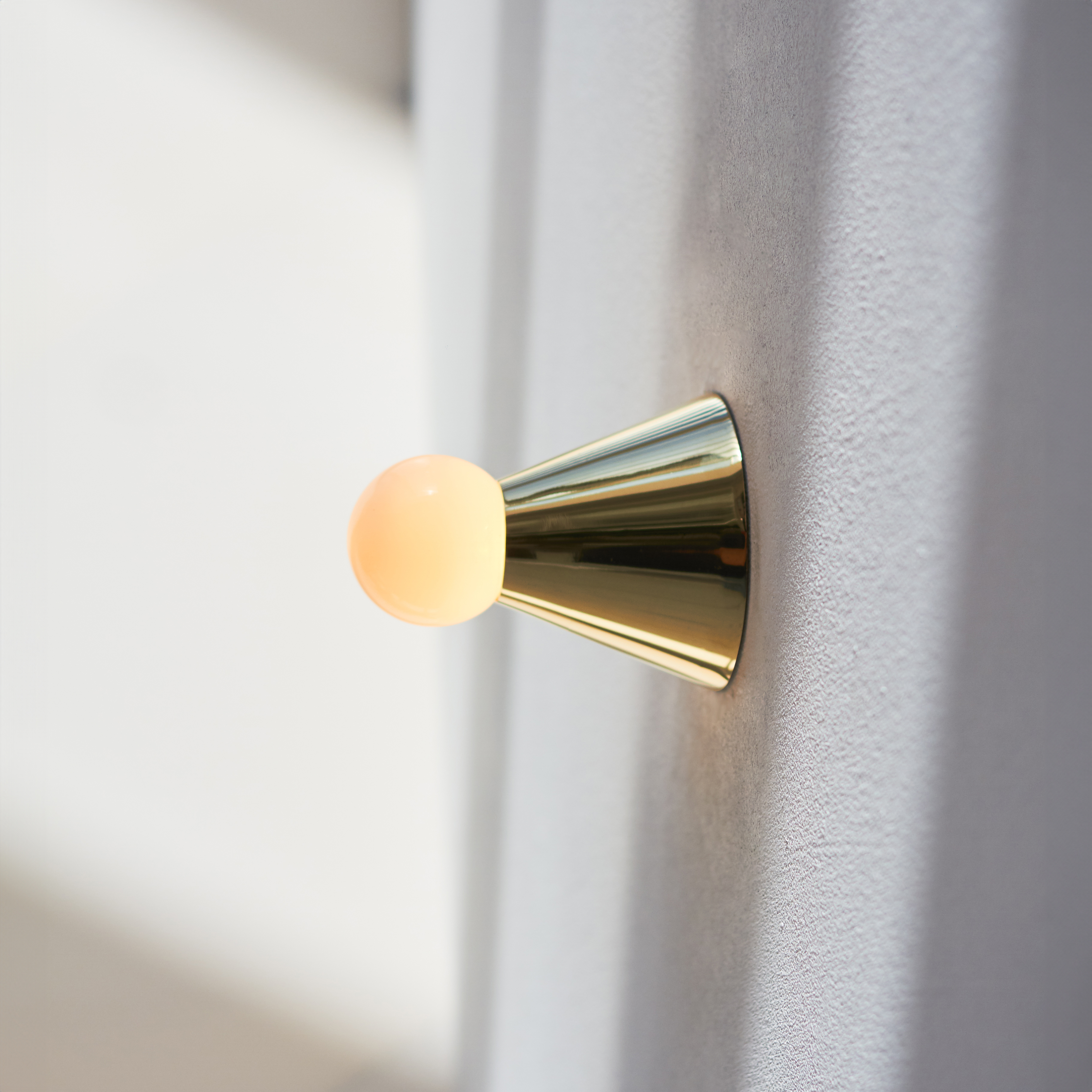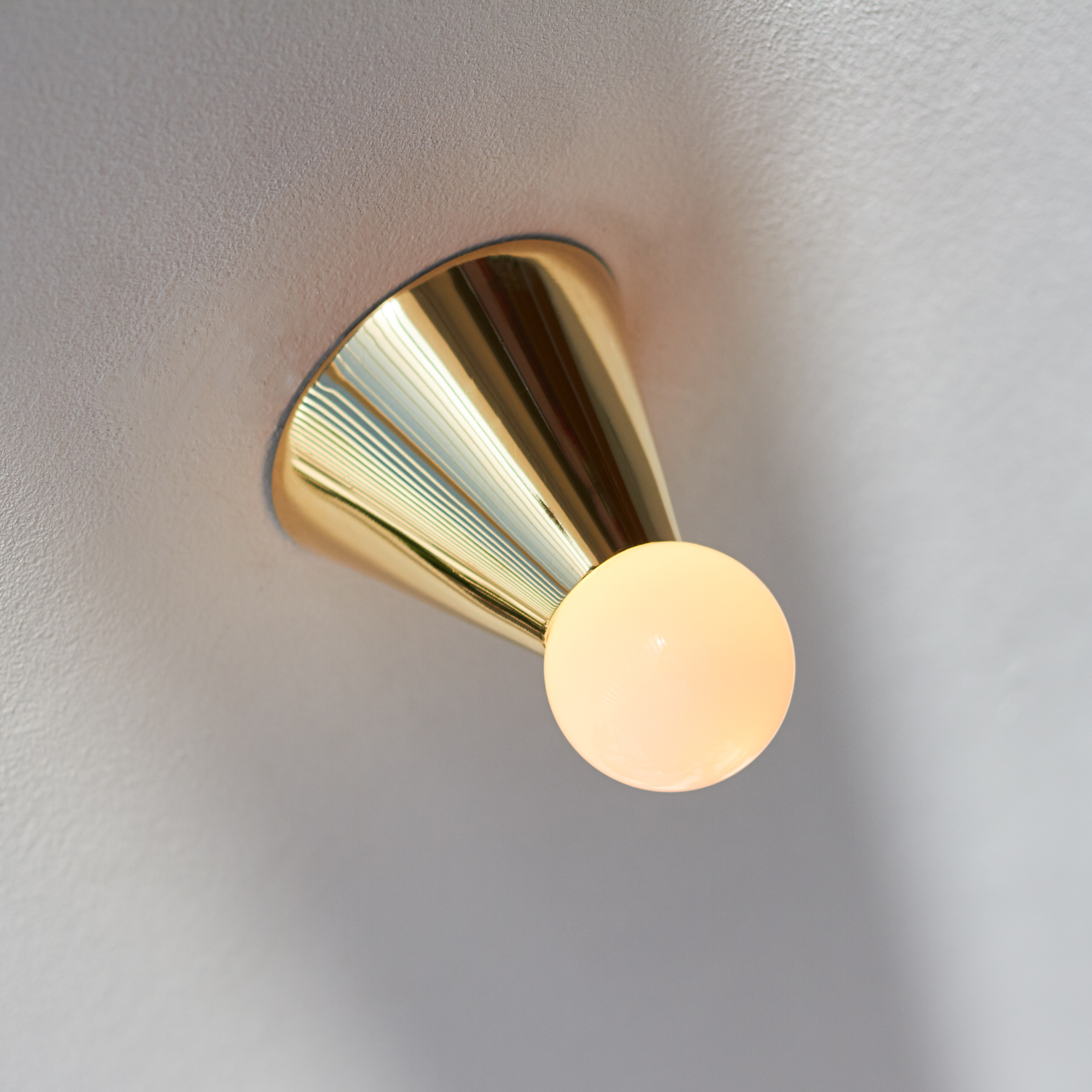Cone Light is a small wall and ceiling sconce with a geometric postmodern reference.