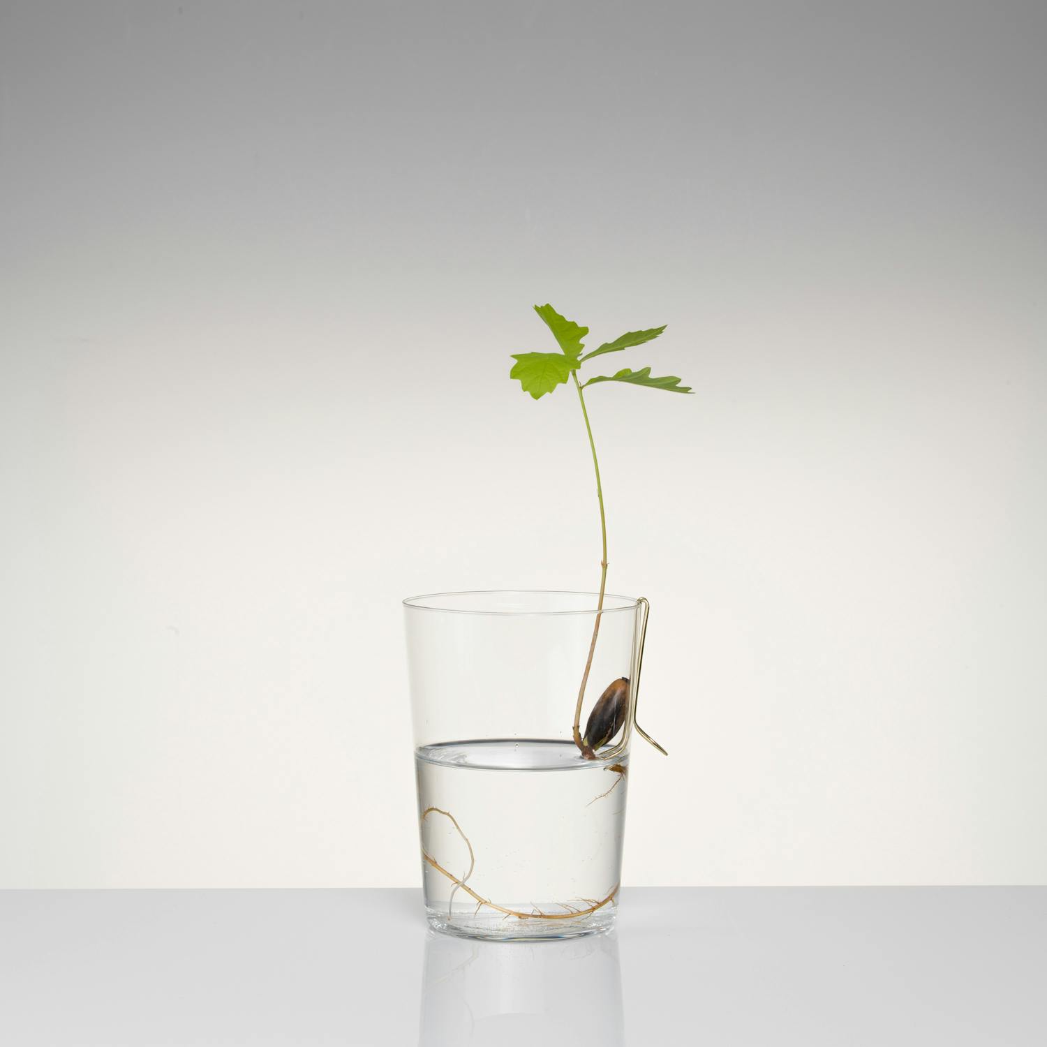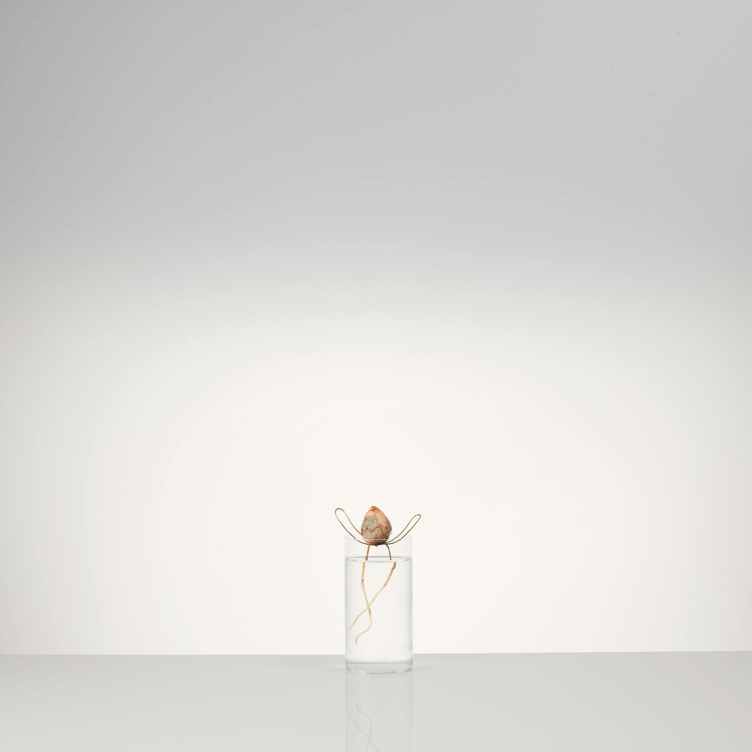 I became obsessed with the simple idea of suspending a seed on the surface of the water, submerged. Just the right level for it to germinate, with the possibility of it supporting itself in the absence of soil, allowing it to stand upright; exposed, all in clear view.’