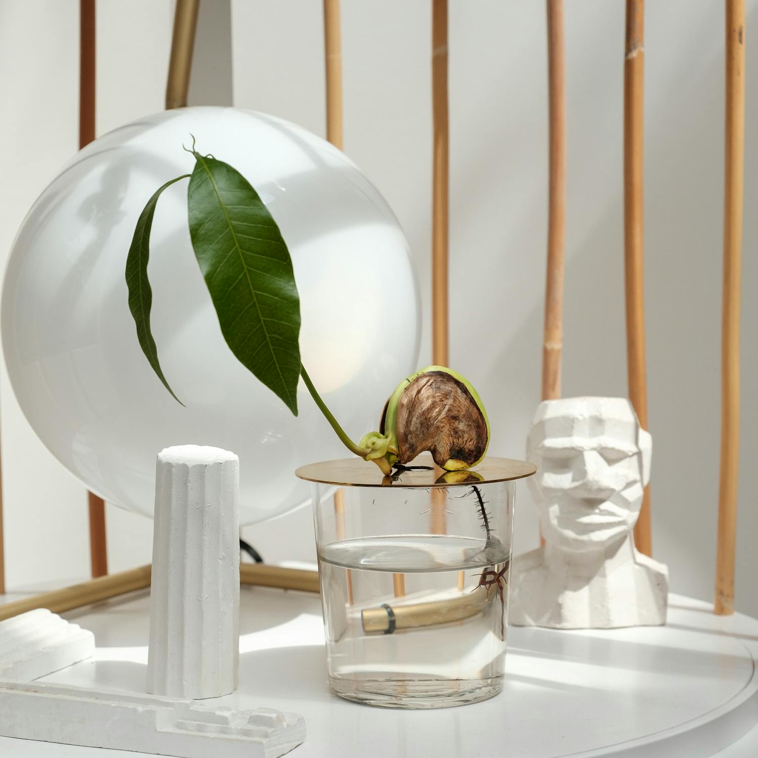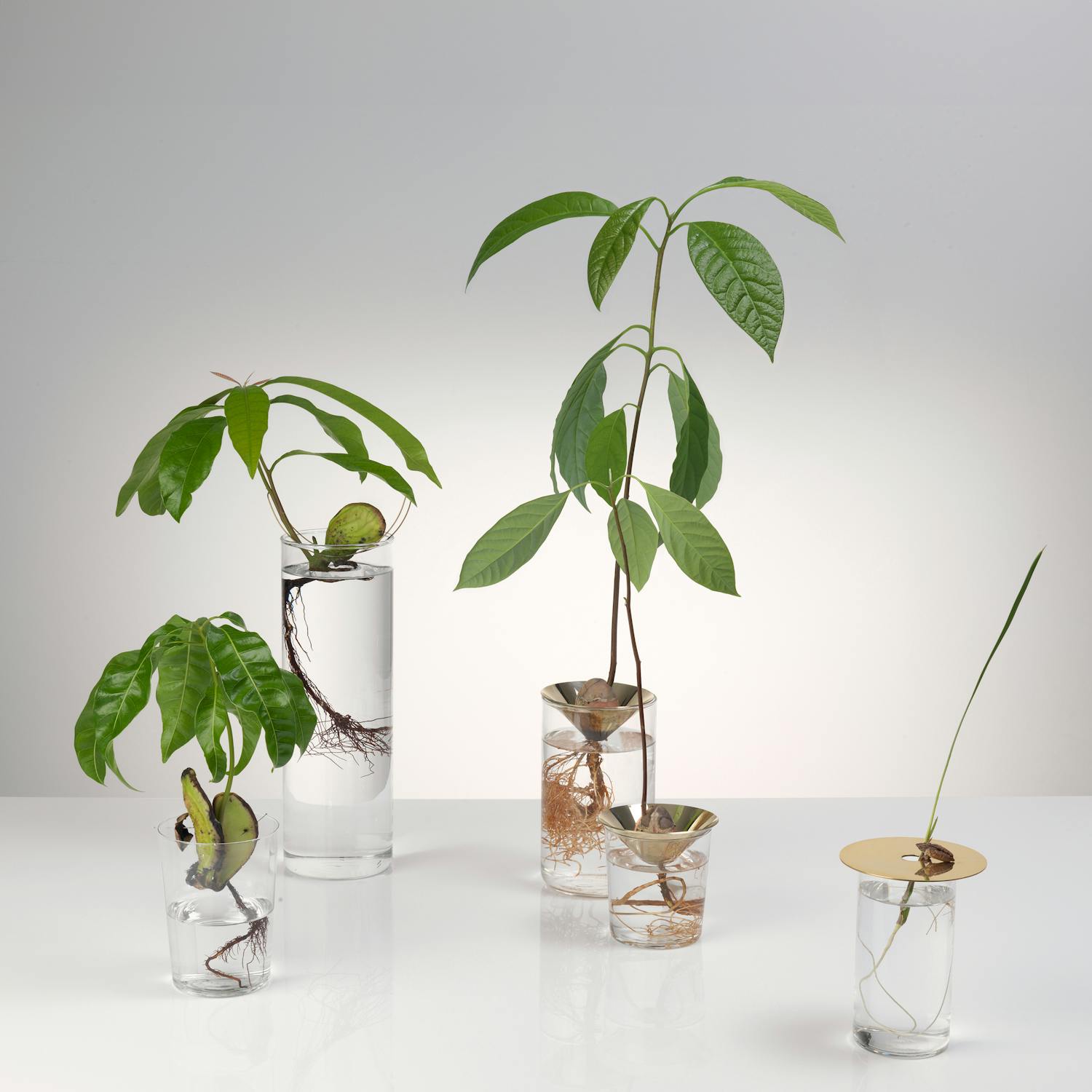 The series consists of seven different models to be positioned over a drinking glass of your choice, each designed to suit a specific seed or stone.