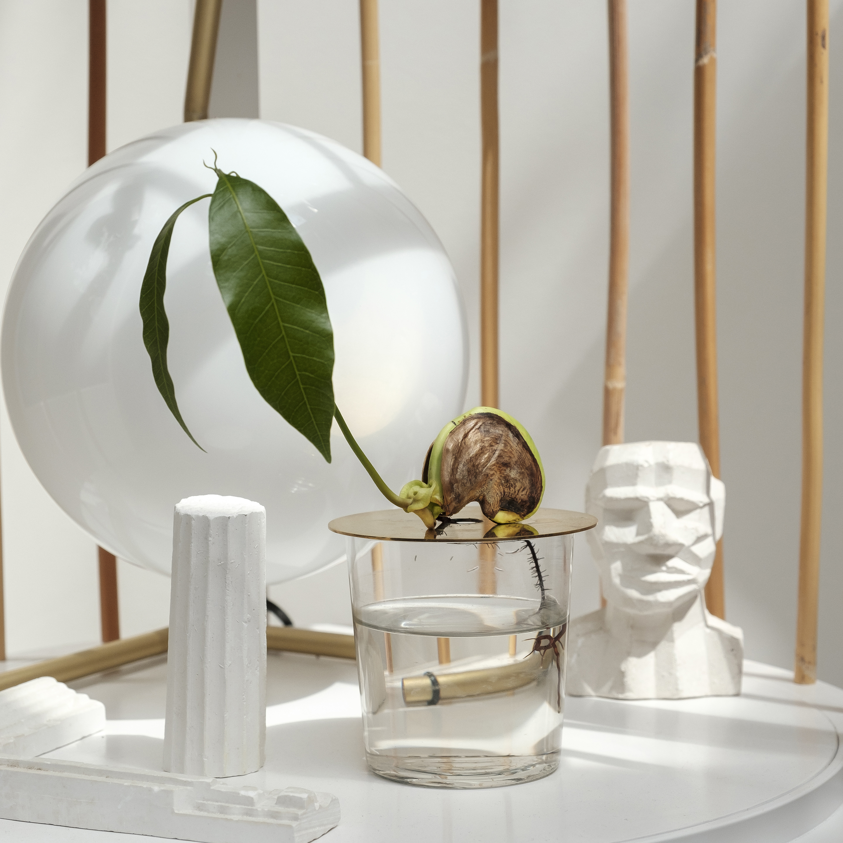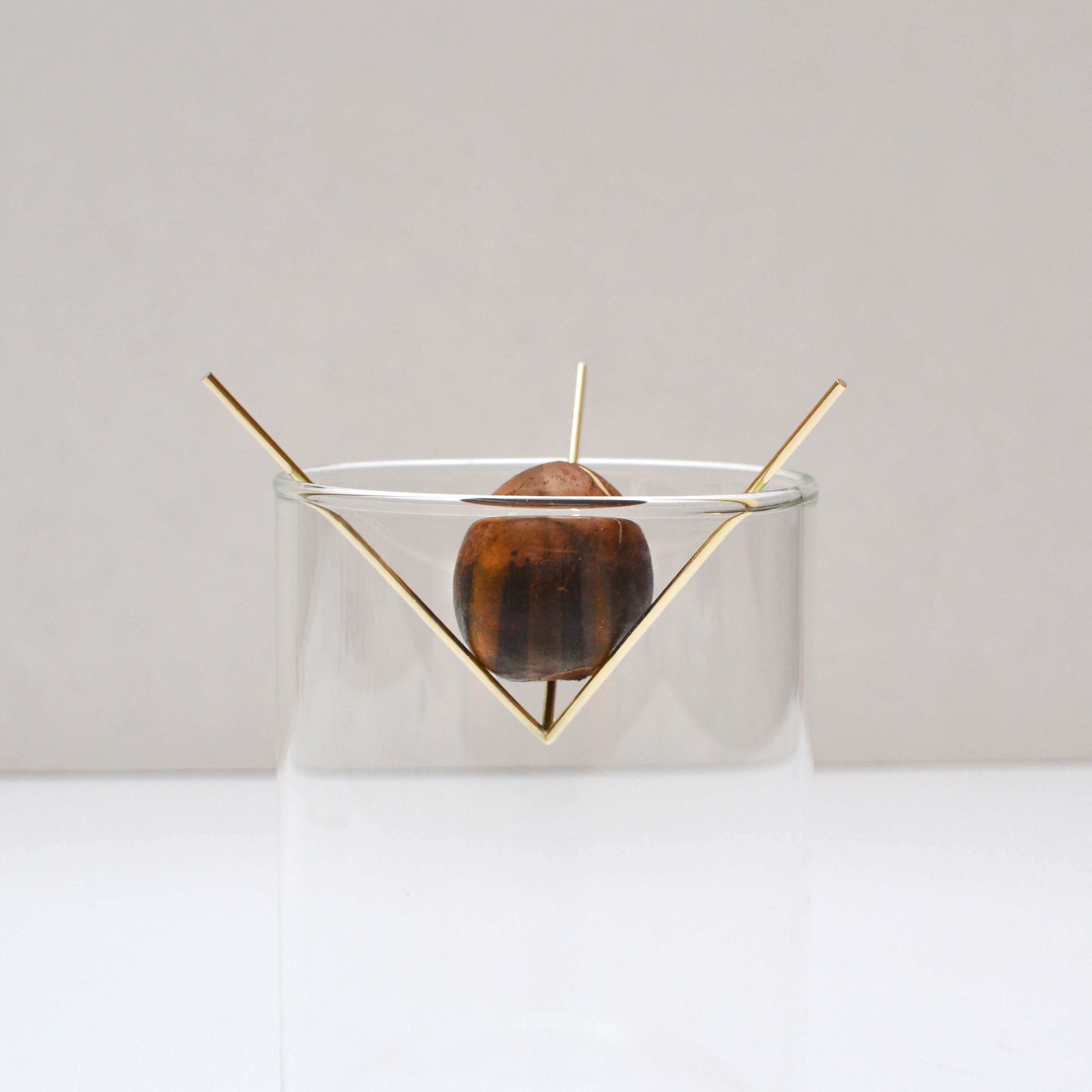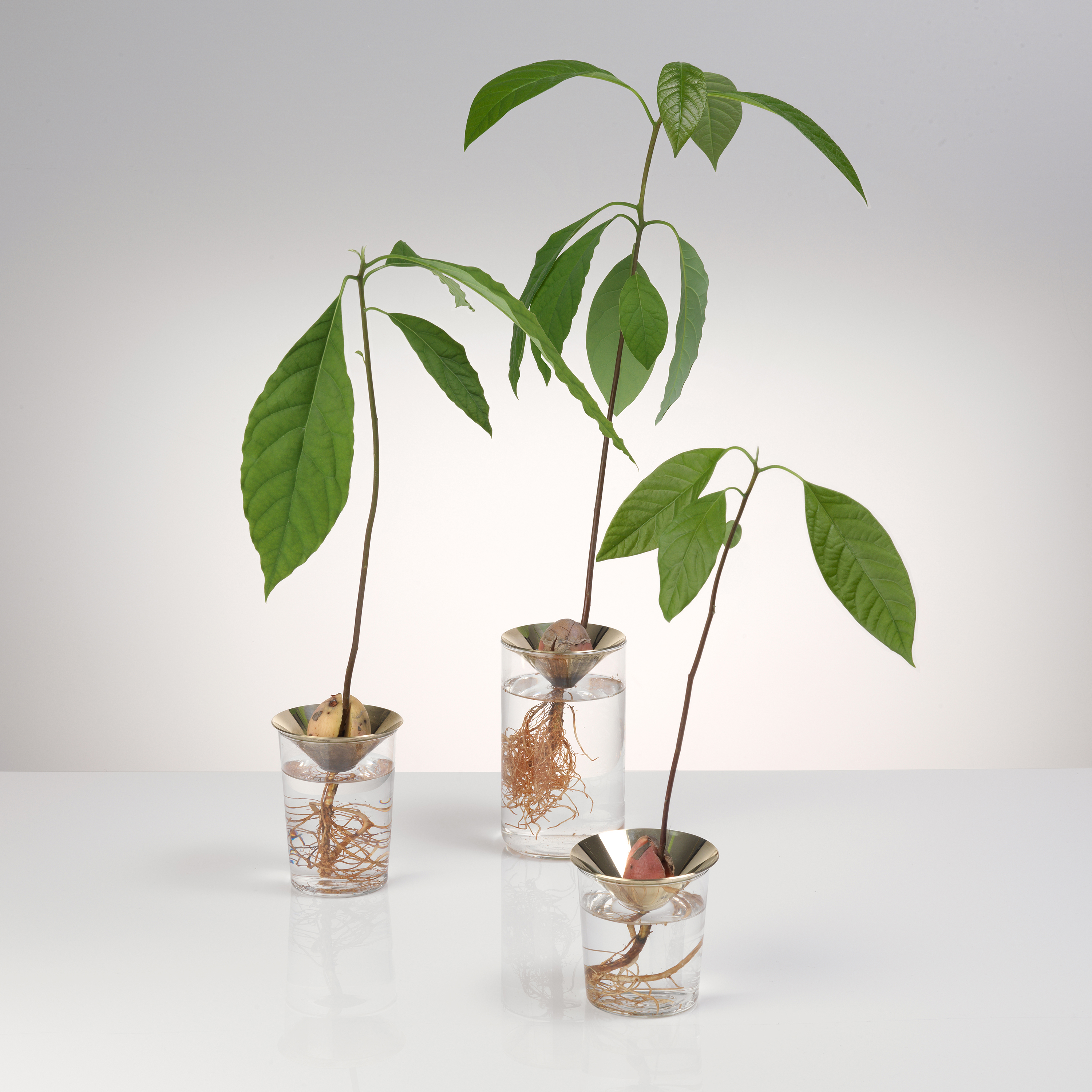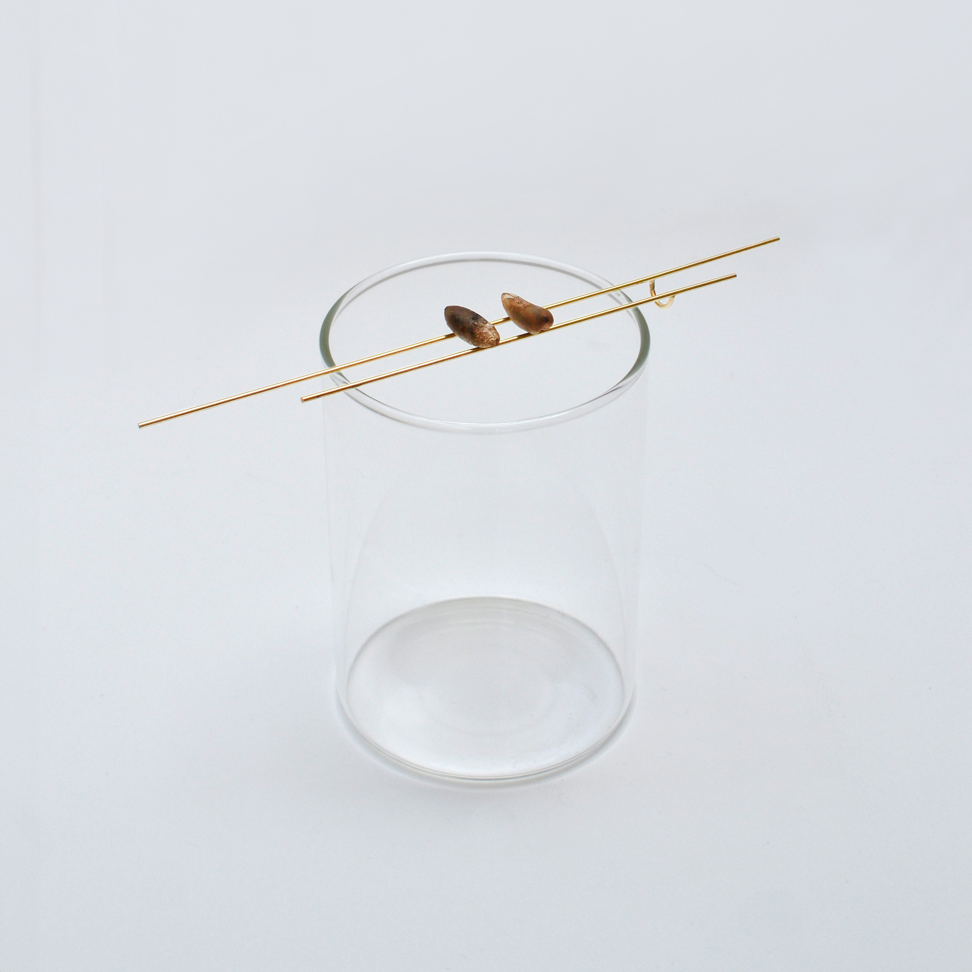 The series consists of seven different models to be positioned over a drinking glass of your choice, each designed to suit a specific seed or stone.