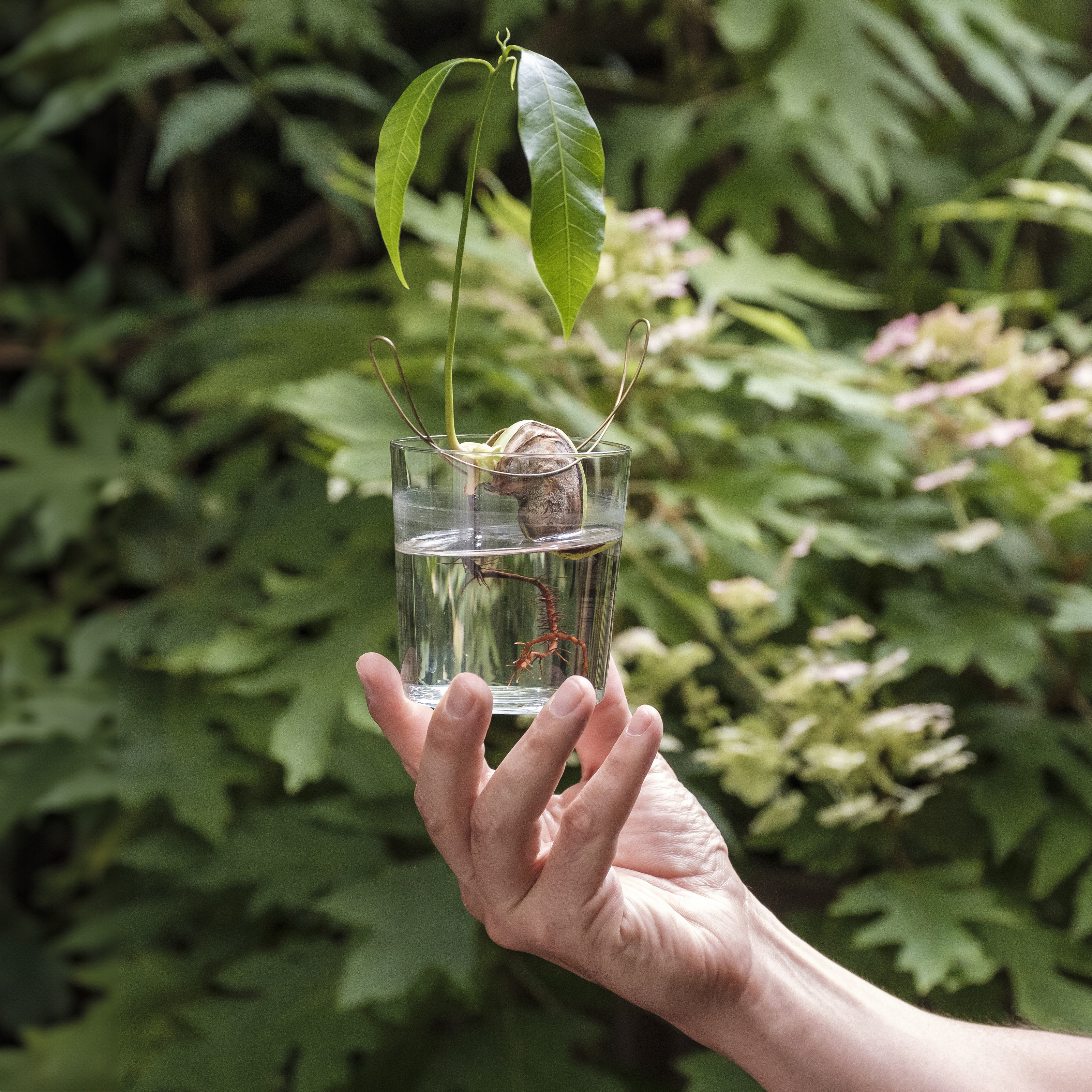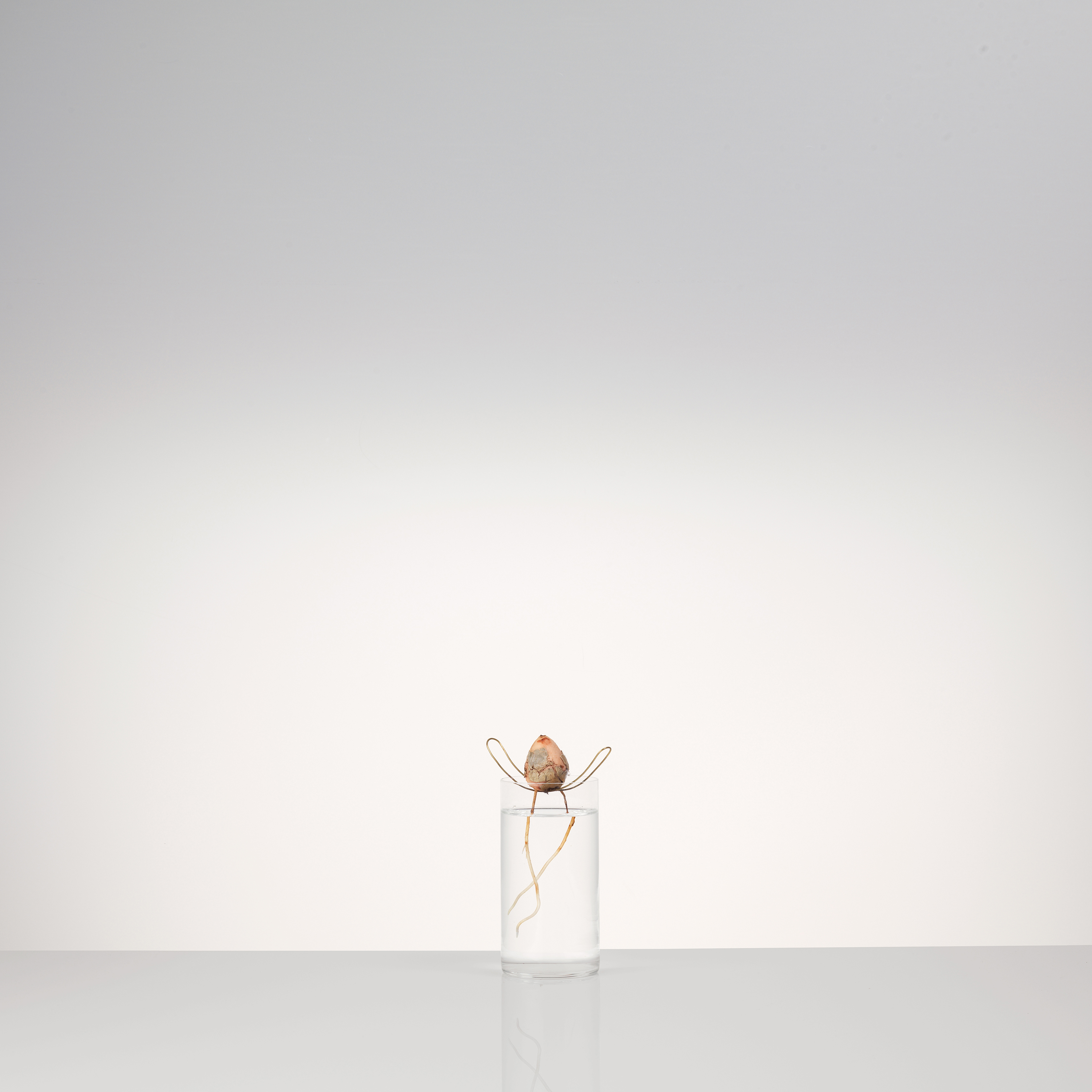 I became obsessed with the simple idea of suspending a seed on the surface of the water, submerged. Just the right level for it to germinate, with the possibility of it supporting itself in the absence of soil, allowing it to stand upright; exposed, all in clear view.’