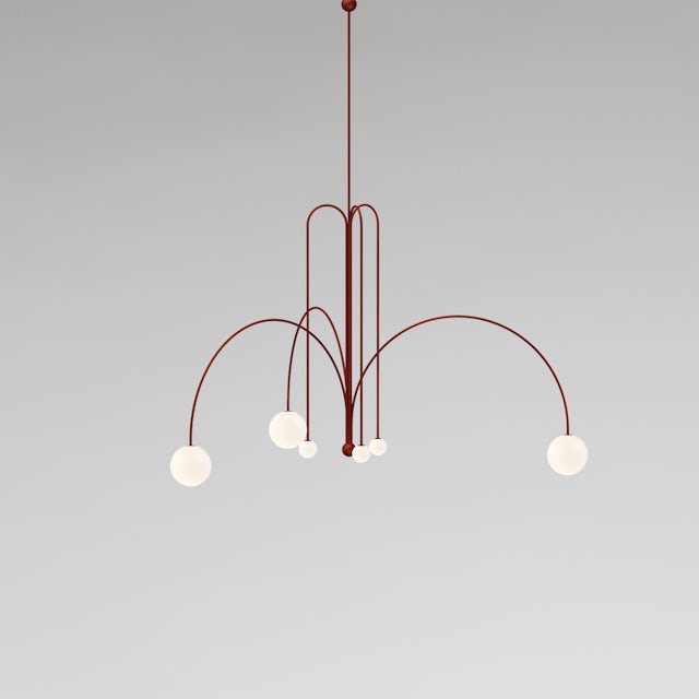 Fontana Amorosa is a celebration of light as a collection of imaginary fountains. Bundles of suggested jet trajectories support glowing spheres, forming disciplined compositions of chandeliers, sconces and candelabras. More than just sources of light, these designs become places for meeting, courtship and meditation. The name is a reference to a naturally formed spring in northwest Cyprus: a mythical destination where the goddess Aphrodite often went to escape Mount Olympus, drink water and maintain a youthful and amorous body and mind.
