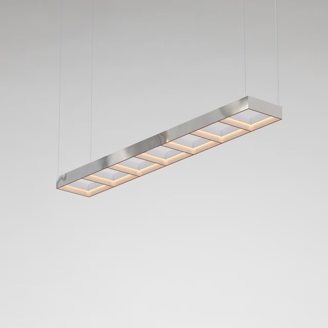 Referencing the ubiquitous office ceiling light, familiar for its functional, box-like form, and drawing inspiration from Ellsworth Kelly’s Windows series, Frame emphasises strong horizontality within a precise grid format, emitting a dimmable warm glow.