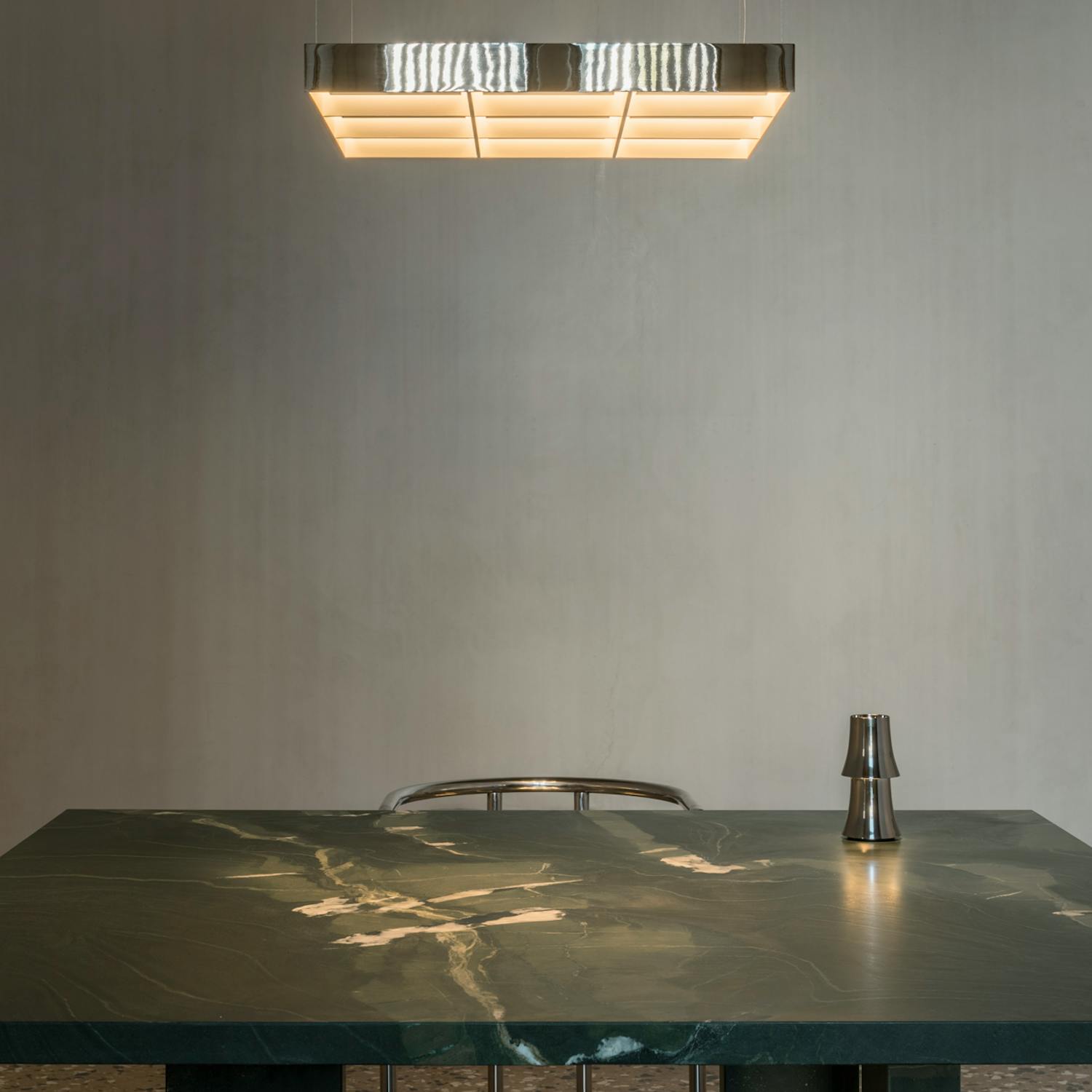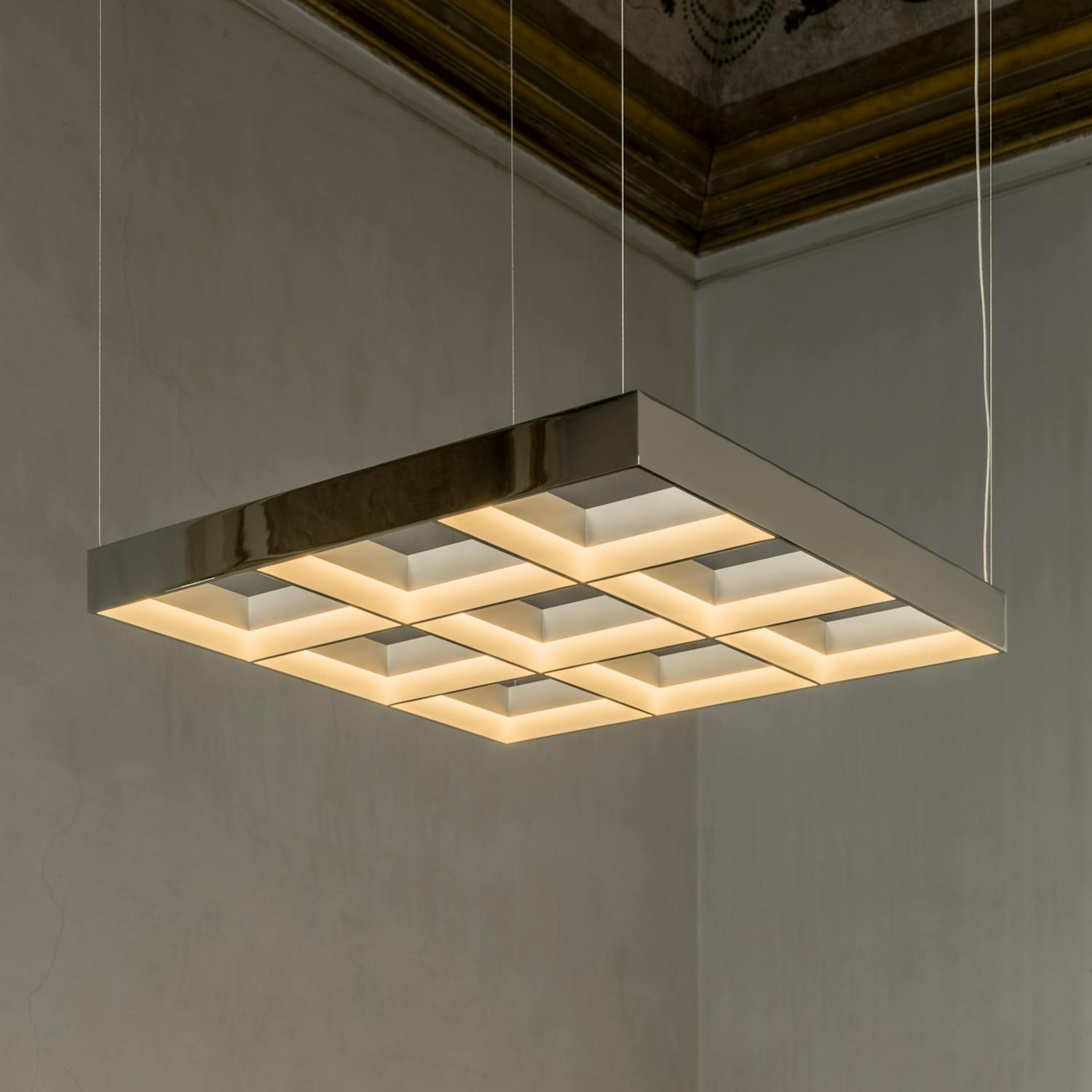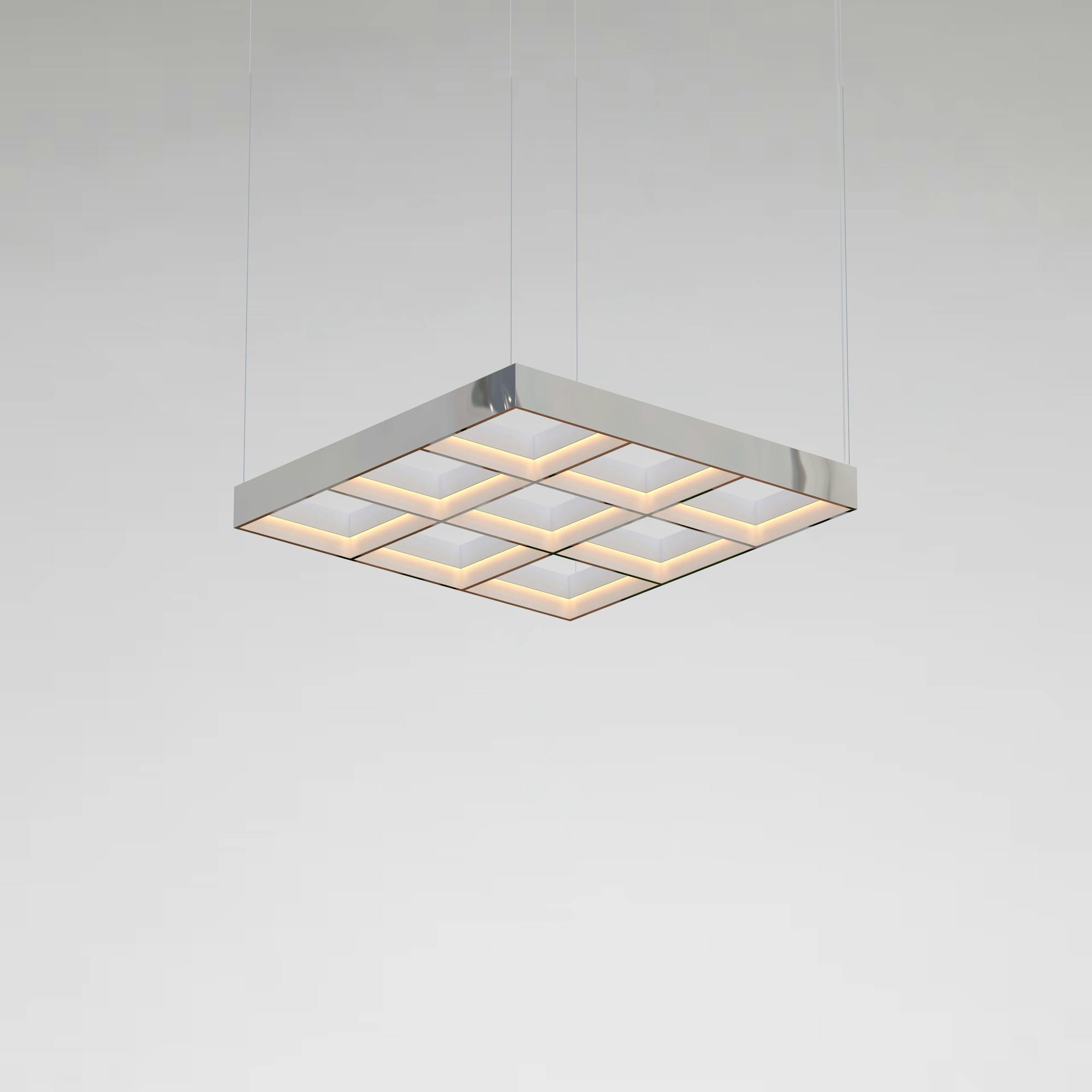 Referencing the ubiquitous office ceiling light, familiar for its functional, box-like form, and drawing inspiration from Ellsworth Kelly’s Windows series, Frame emphasises strong horizontality within a precise grid format, emitting a dimmable warm glow.