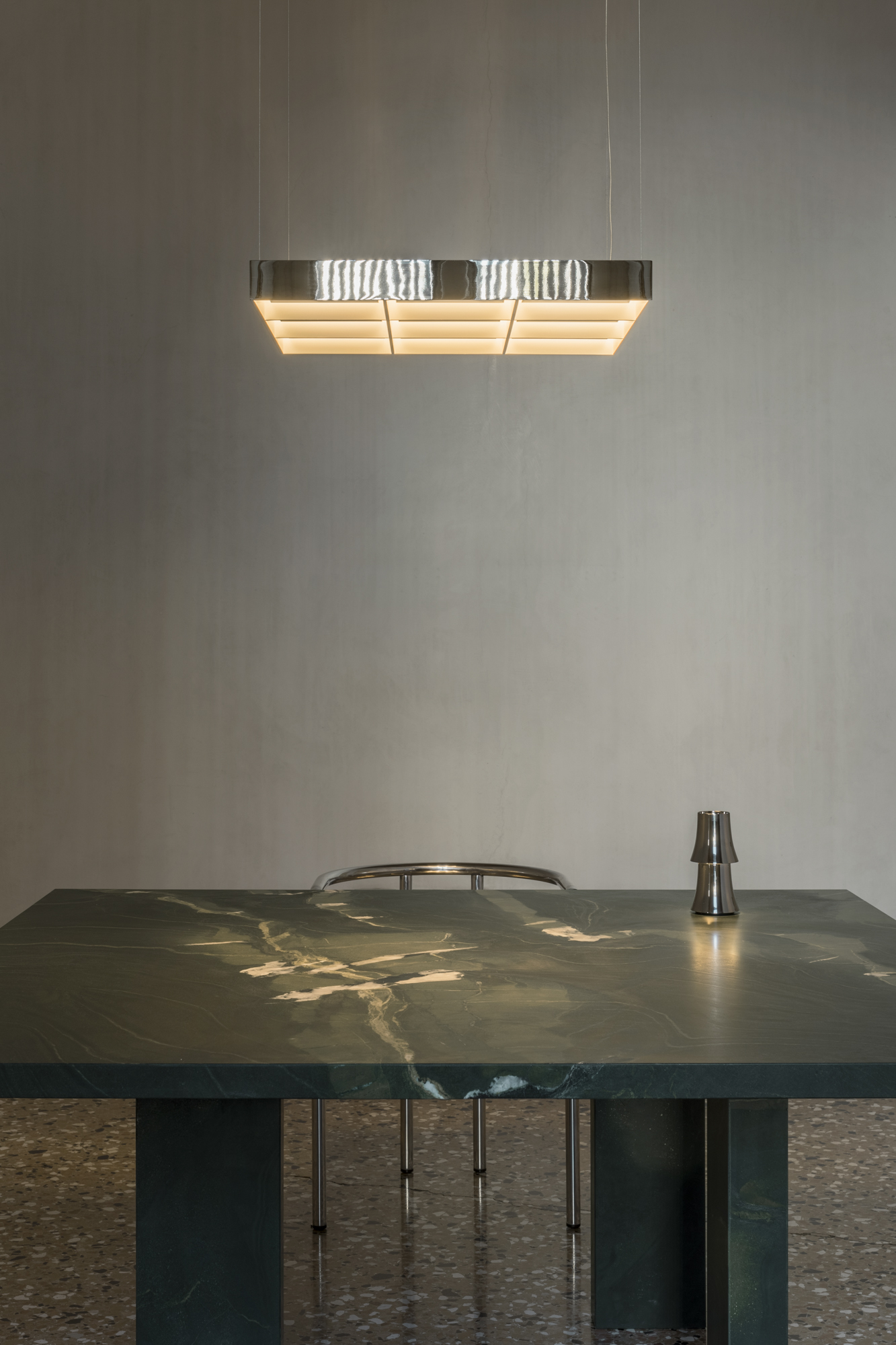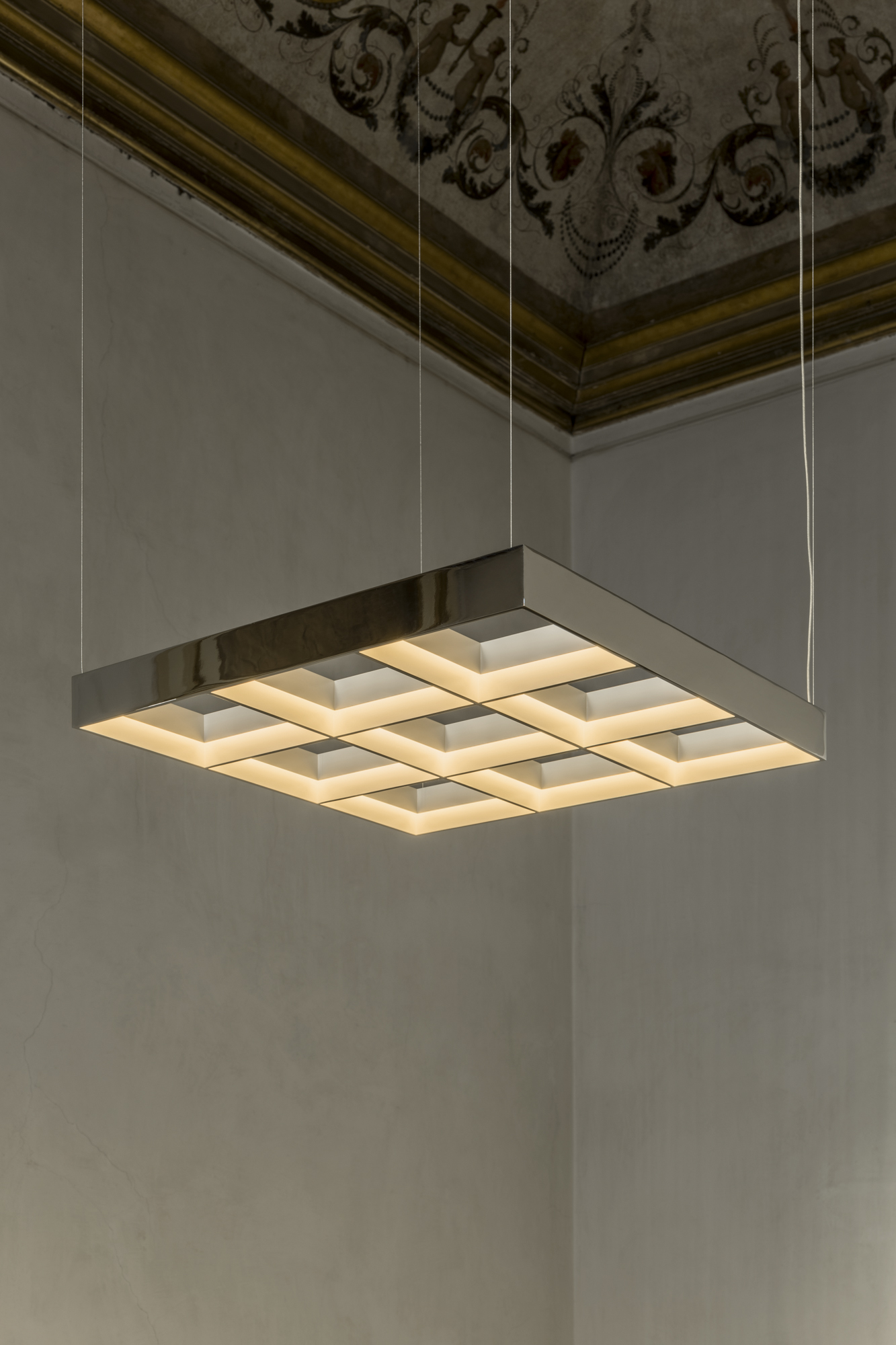 Referencing the ubiquitous office ceiling light, familiar for its functional, box-like form, and drawing inspiration from Ellsworth Kelly’s Windows series, Frame emphasises strong horizontality within a precise grid format, emitting a dimmable warm glow.