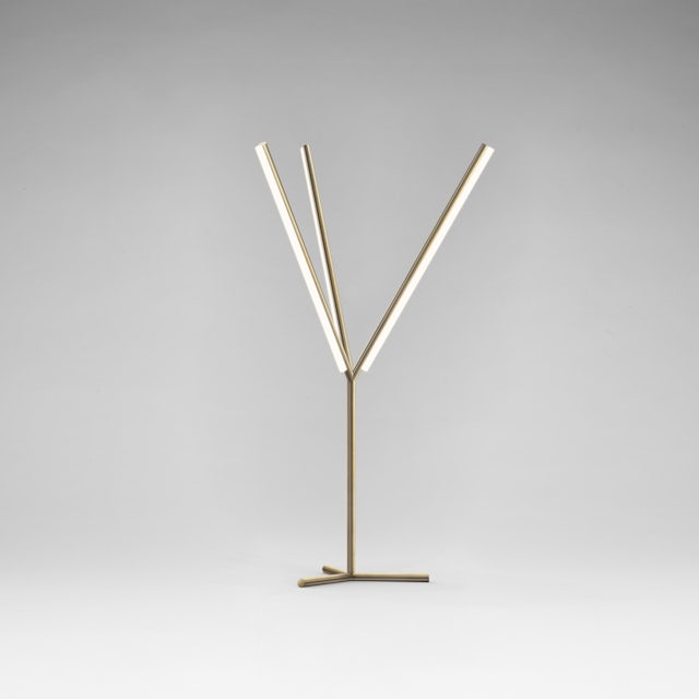 ‘I designed this family of lights after my extensive travels to India, to places where, at night, long, linear bulbs hang in random configurations. Each of those arrangements is a spontaneous creative act that solves a practical problem. The fluorescent tubes, naked in plastic casings, are mounted on metal brackets or even simply tied to buildings and trees. The supports and unrefined casings completely disappear in the dark, so all that remains are the bright silhouettes. Moving through these, one starts to see images of familiar objects. And, just at the point of recognition, the viewing angle changes and the shapes once again become ambiguous, attenuated; almost rarefied.’
