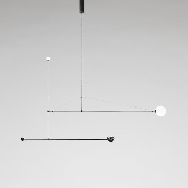 The first Mobile Chandelier was presented at Design Miami in 2008 for Cristina Grajales Gallery in New York. It was later developed as a collection for the Michael Anastassiades brand and has since remained an ongoing series. There are 16 chandeliers to date, the concept evolving with each new design. For example, Mobiles 1 to 6 consist of linear tubes assembled in varying configurations, while Mobiles 7 to 13 see the introduction of geometric curves. The newest additions, Mobiles 14 to 16, introduce a more free-form design, representing a departure from the disciplined geometry presented in previous models.