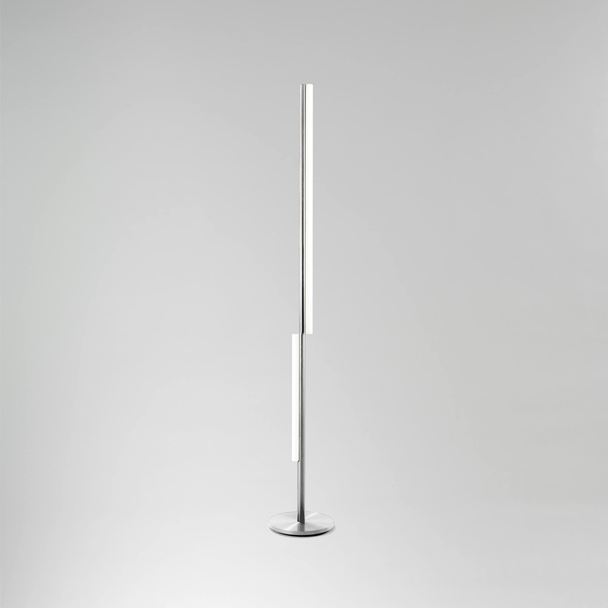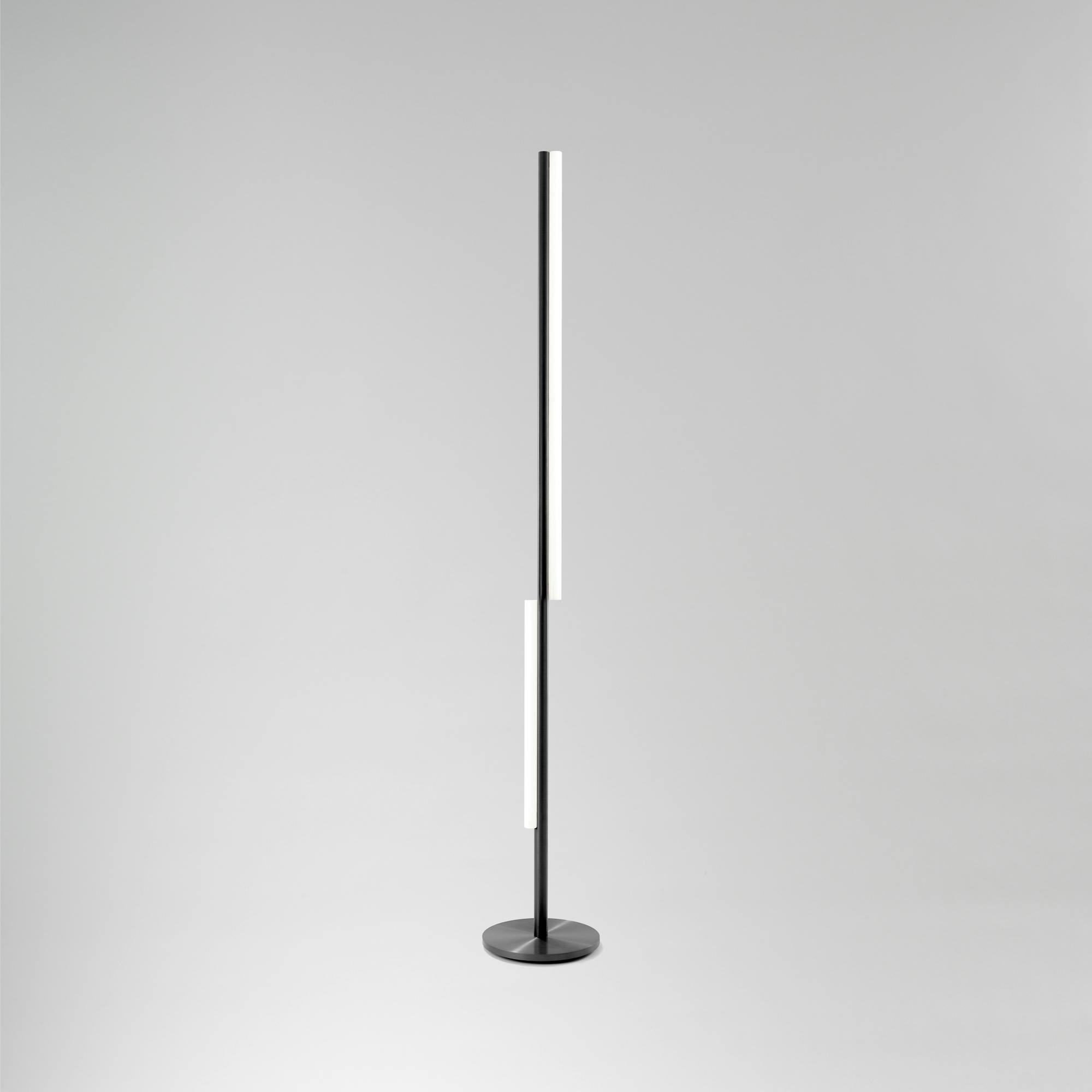 This collection of fixtures uses the standard unit of the light tube as a measure. Through the alternation of 1m and 0.5m modules, it creates a rhythmic language of recording space. The designs evolve as a parallel progression of rods, combining five variations of standard linear LED bulbs and metal tubes of the same diameter. With this series, Michael Anastassiades expands the compositional possibilities of some of the most structural elements of lighting, engaging the viewer in a rigorous yet playful exercise in measuring.