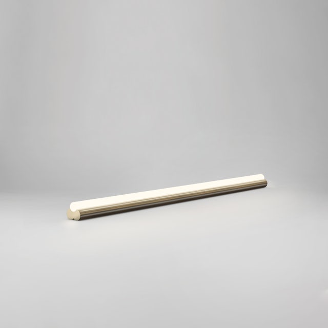 The lights posit various combinations of standard linear incandescent bulbs, either 0.5m or 1m long, and tubular brass fittings of the same diameter. They appear as parallel repetitions of rods, varying between metal and illuminated. The design process was systematic, bordering on obsessive, with Anastassiades exploring all possible iterations, suggesting a mathematical sequence. The final cut, however, was made purely on aesthetic grounds. The 11 arrangements that went on to become the final series of lights were chosen for their apparent effortlessness. Belying the complexity of their construction and the skills of the UK-based machinist who manufactured them, they appear as though they came together by chance.