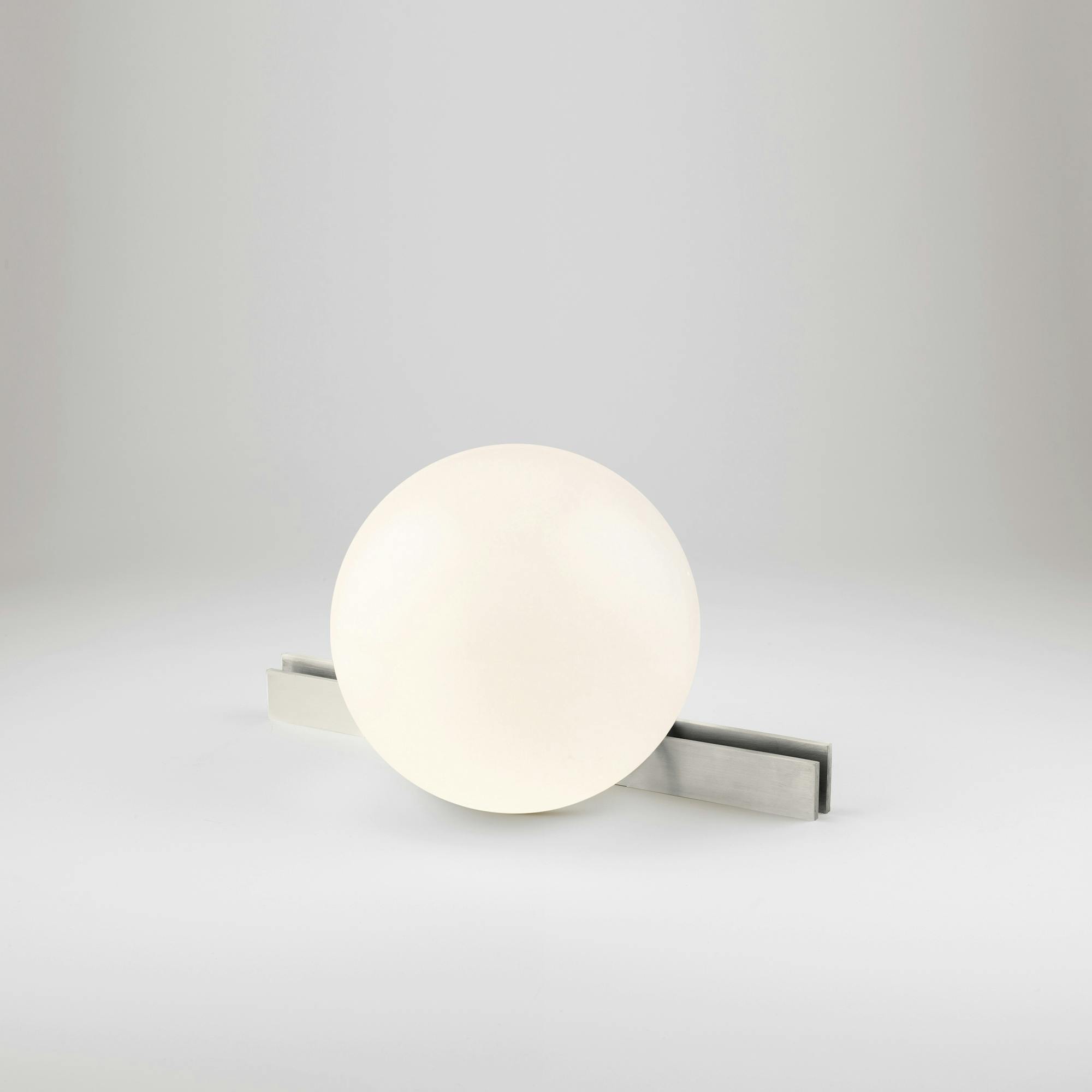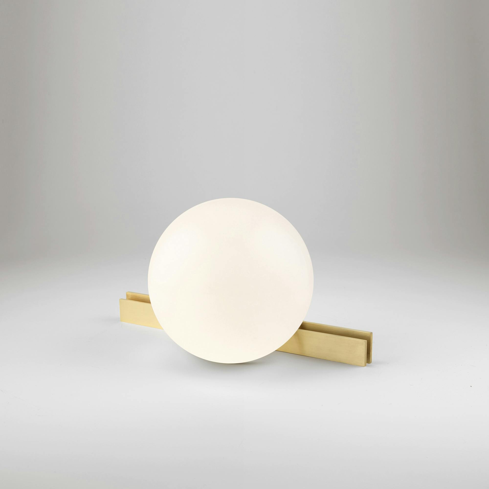 Somewhere in the Middle, To the Top and Rest pay homage to Wilhelm Wagenfeld and Carl Jakob Jucker’s MT8 Lamp – also known as the Bauhaus Lamp. Their work was designed in 1924, and is one of the purest expressions of Bauhaus theory. This series features cut opaline spheres resting on different configurations of identical brass sections.