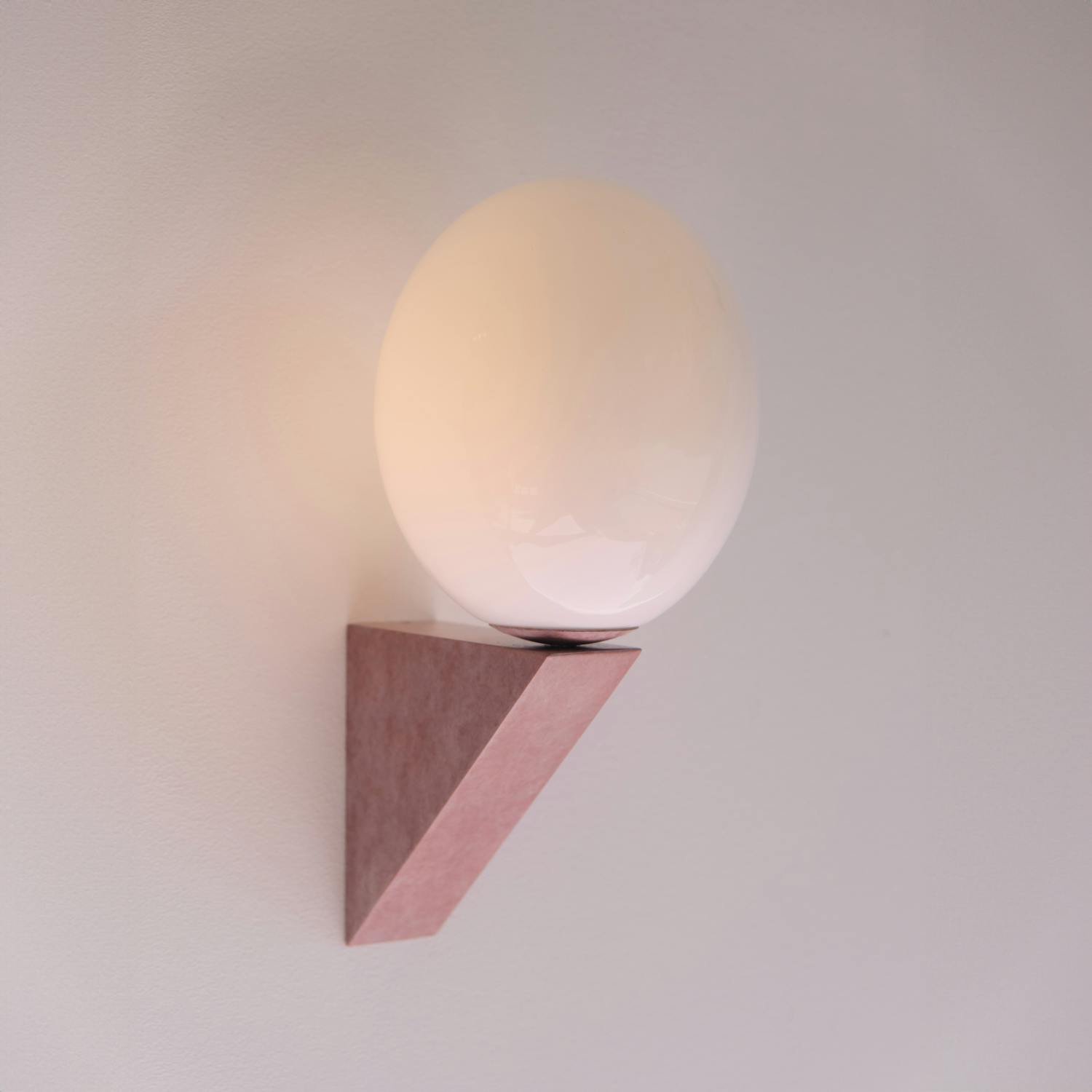 The Philosophical Egg was realised as an homage to the mysterious pendant that appears in the famous altar painting Brera Madonna by Piero della Francesca. The various fixtures featured reflect the same architectural approach that the artist represents in the painting. The refined composition of primordial shapes with an illuminated ostrich-egg-shaped oval allows the light to become the central focus of the space. The collection comprises various pendants and sconces.