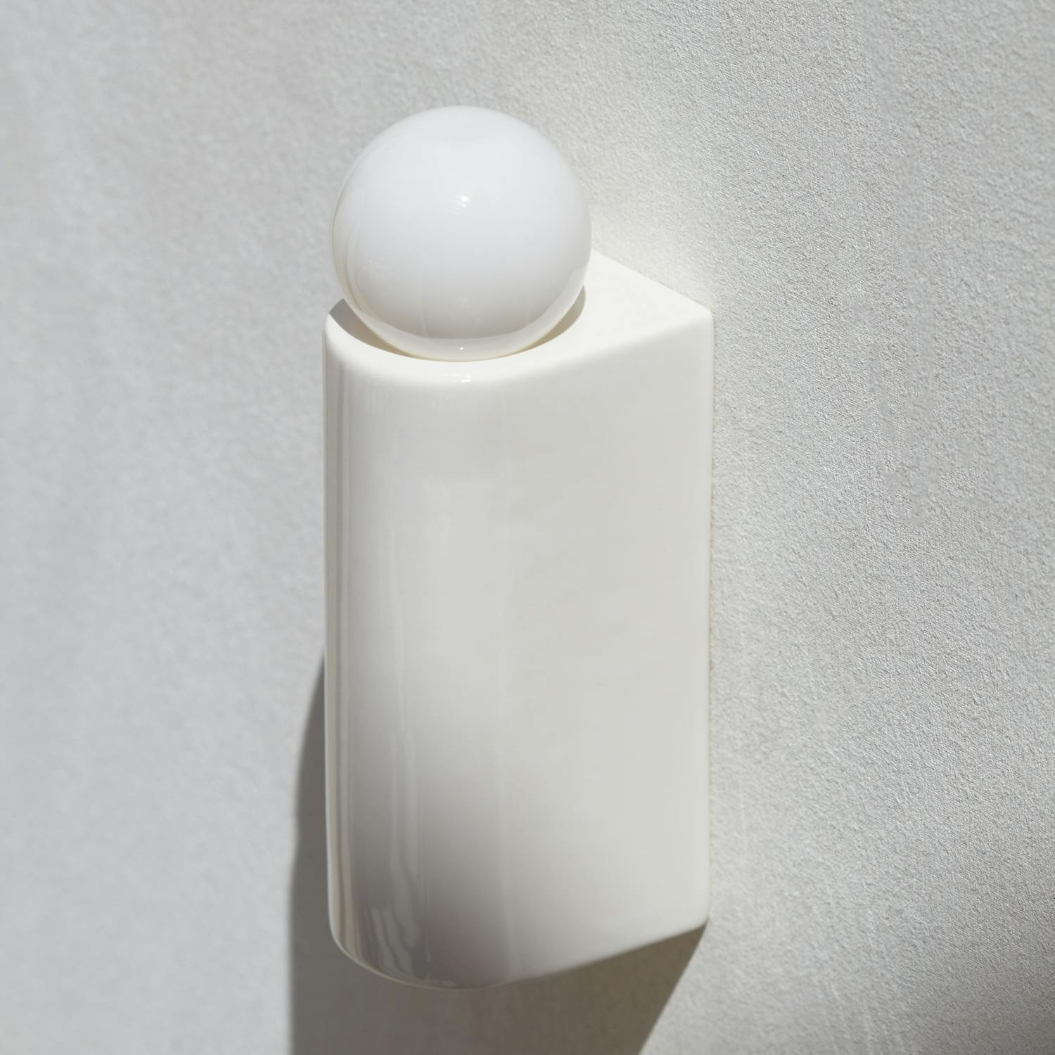 White Porcelain Series is a lighting collection comprising of sconces with an emphasis on materiality and simplicity of form. It is distinguished by refined proportions and sophisticated, invisible fixture details that reintroduce porcelain within a contemporary context and distances it from the utilitarian language with which it is often associated. Referring to the Bauhaus porcelain lights used in the 1930s, this simplified version is slip-casted to provide a tough, resistant finish. Due to the manufacturing process, each piece is inherently unique.