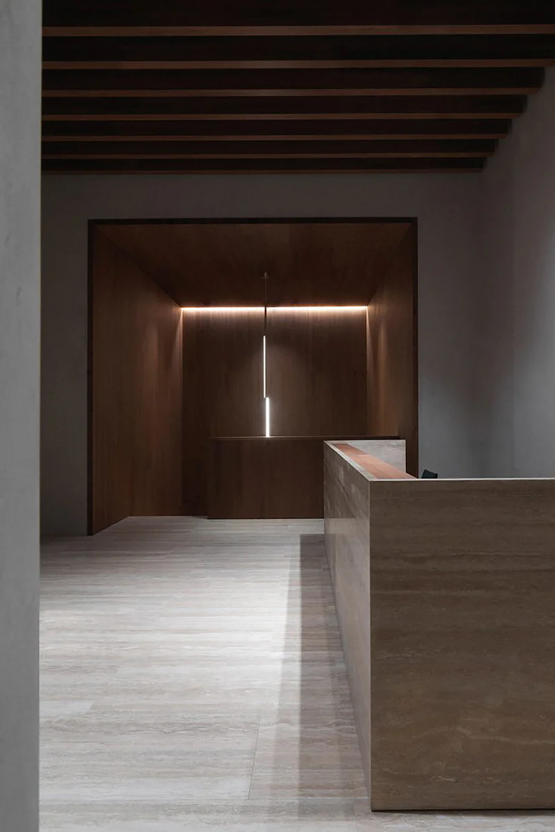 Specifically conceived for the Molteni Group flagship store in New York, this light intervention responds to Vincent Van Duysen’s minimalistic architecture. The concept behind Anastassiades’ One Well Known Sequence collection was adopted and extended to connect the store’s two levels with a rhythmic bar of light. With his signature use of a 1m linestra bulb as a module that measures the space around it, Anastassiades creates an architectural intervention that magnifies the formal qualities of the surrounding environment by means of radical simplicity.