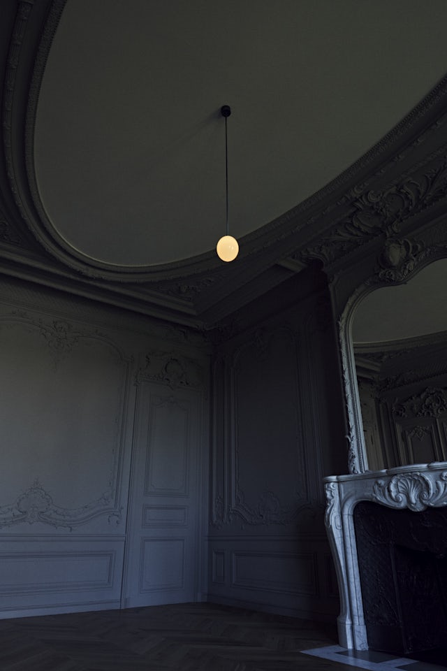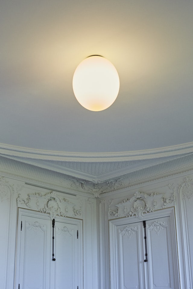 Nature and art are frequent sources of inspiration for Michael Anastassiades. Inspired by Piero della Francesca’s masterpiece Brera Madonna, this unique ceiling light was designed as part of a private commission. The shape of both lights, installed in two different rooms of the same apartment, recalls that of an ostrich egg – one is the size of a real egg, while the second lamp’s dimensions have been exaggerated.