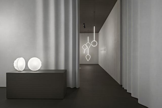 Michael Anastassiades at Flos’ presentation at Euroluce, Salone del Mobile, Milan in 2017.