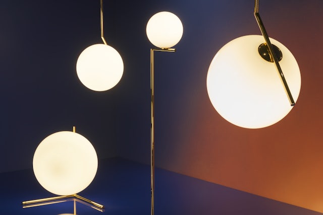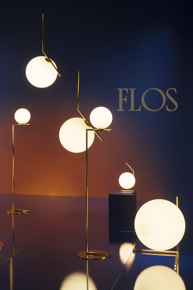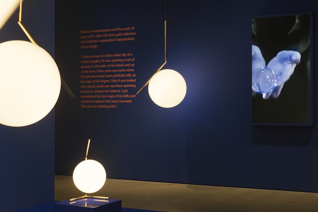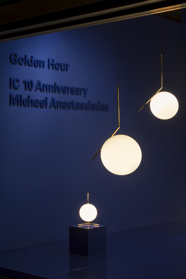 Michael Anastassiades and Flos celebrate 10 years of IC with a numbered and signed special edition in 24-carat gold. "This collection is about balance. Table, wall, pendant and ceiling lamps, whose core element is a sphere perfectly balanced on the edge of a rod".