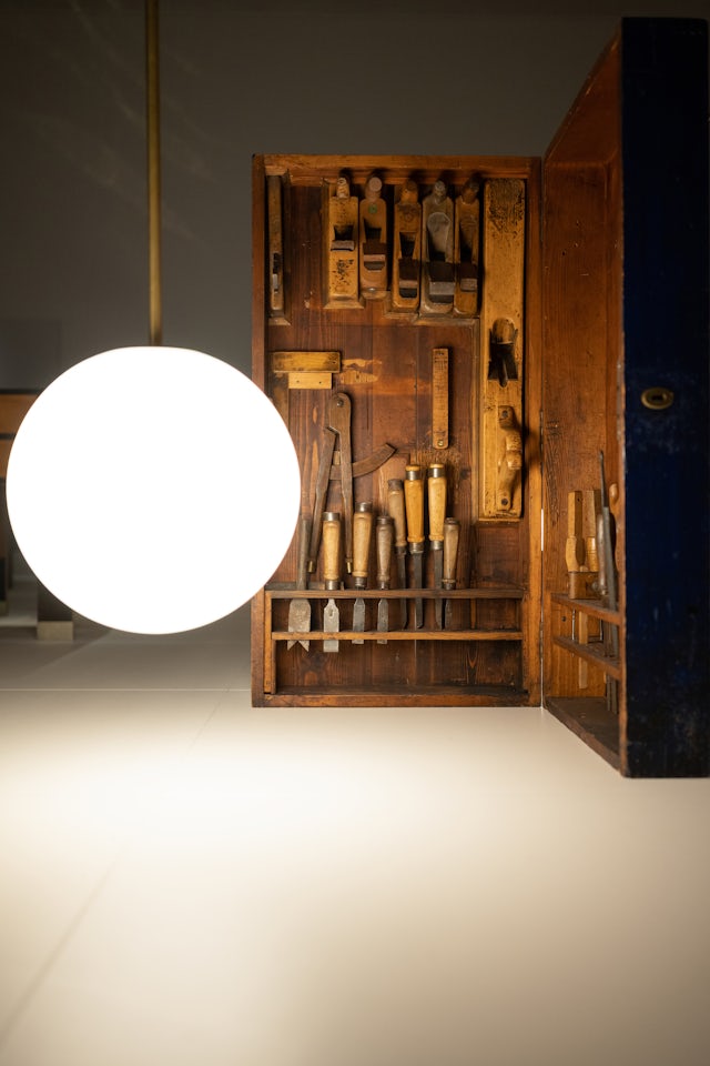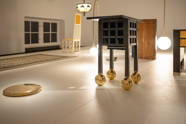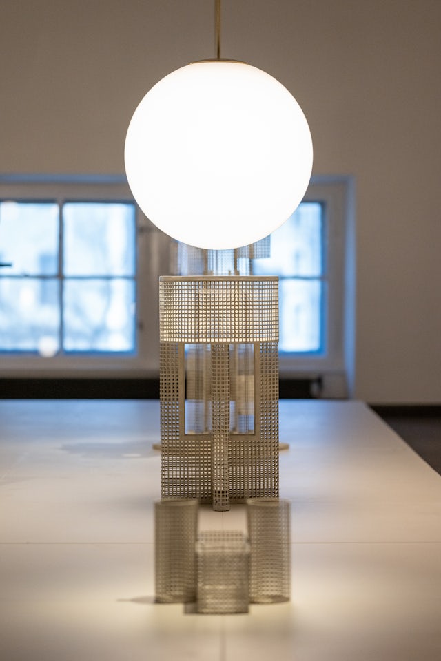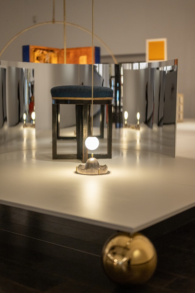 With this exhibition the MAK continues a decades-long tradition of inviting artists and designers to engage with the museum and its collection. As a starting point of his presentation, Anastassiades has chosen the sphere, a design element that is not only integral to Anastassiades' design language but was already popular in the Biedermeier era and frequently formed the feet on WW cabinets. Two oversized pedestals balanced on brass spheres serve to display the exhibits, that Anastassiades ingeniously highlights using spherical lights of his own design.