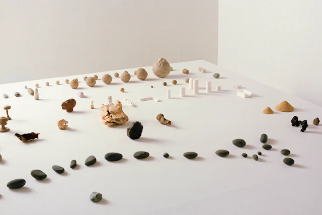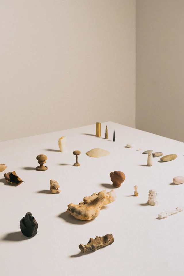 The exhibition is presented in carefully laid-out displays of things Michael had unearthed in nature or sourced from his own collections. Together, they formed a constellation of objects that, placed in careful relation to one another, were part of a syntax of ‘Things That Go Together’.