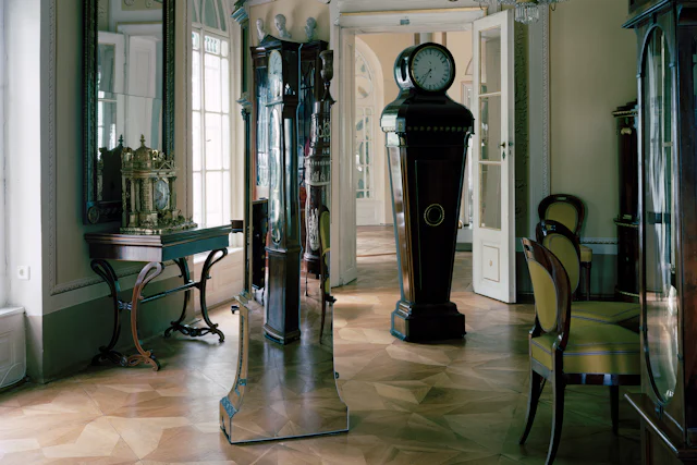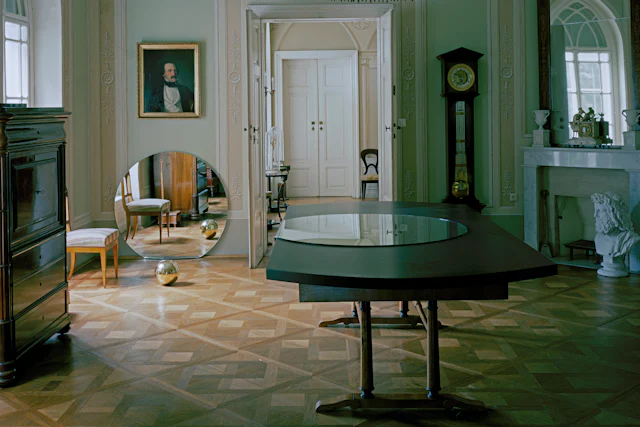 Set at Geymüllerschlössel, a Biedermeier period house located on the outskirts of Vienna, the exhibition was inspired by a collection of timepieces belonging to the last owner of the house. It travelled through a continuum of events, from the past through to the present and beyond into the future. The eclectic collection of furniture and objects was mixed with contemporary pieces, some of which were created especially for the exhibition.